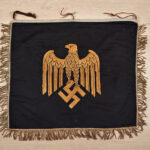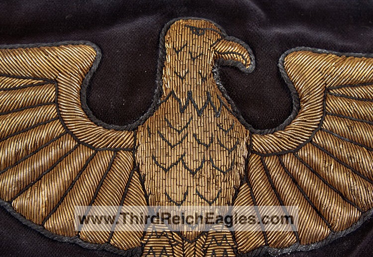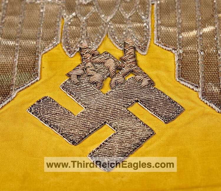 There are many examples of Third Reich period podium banners depicting a diverse array of eagle styles- embroidered/ stitched, printed or separately attached.