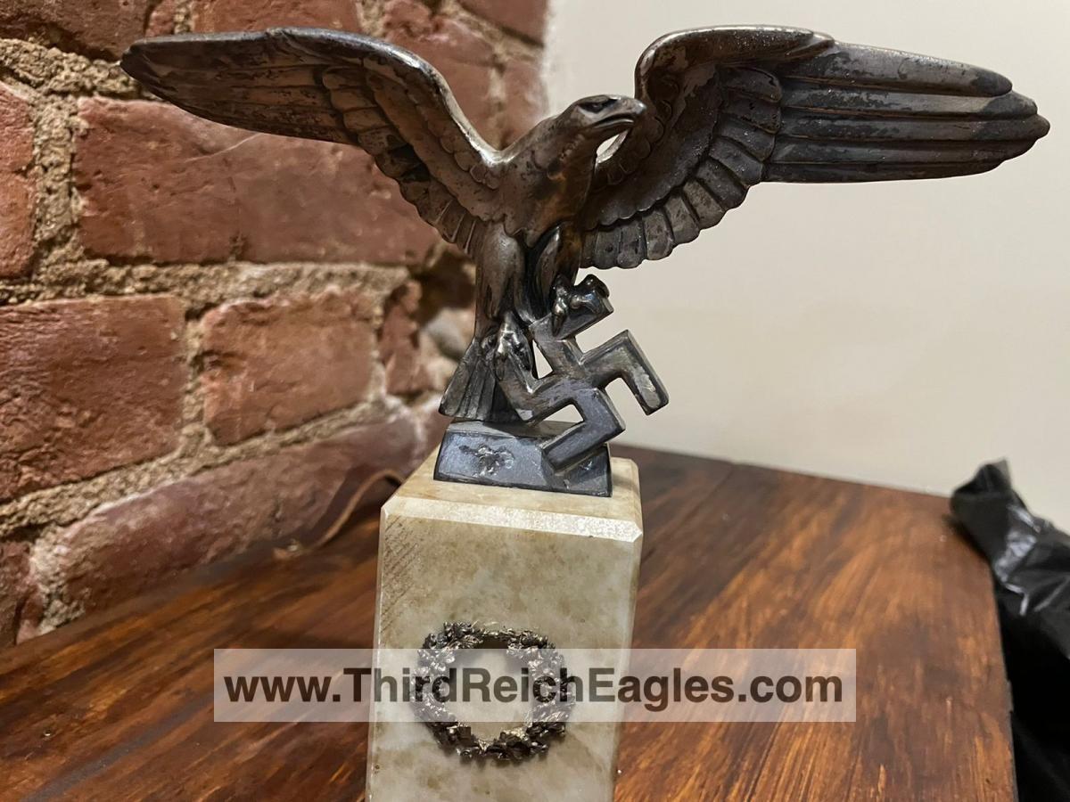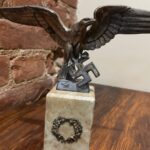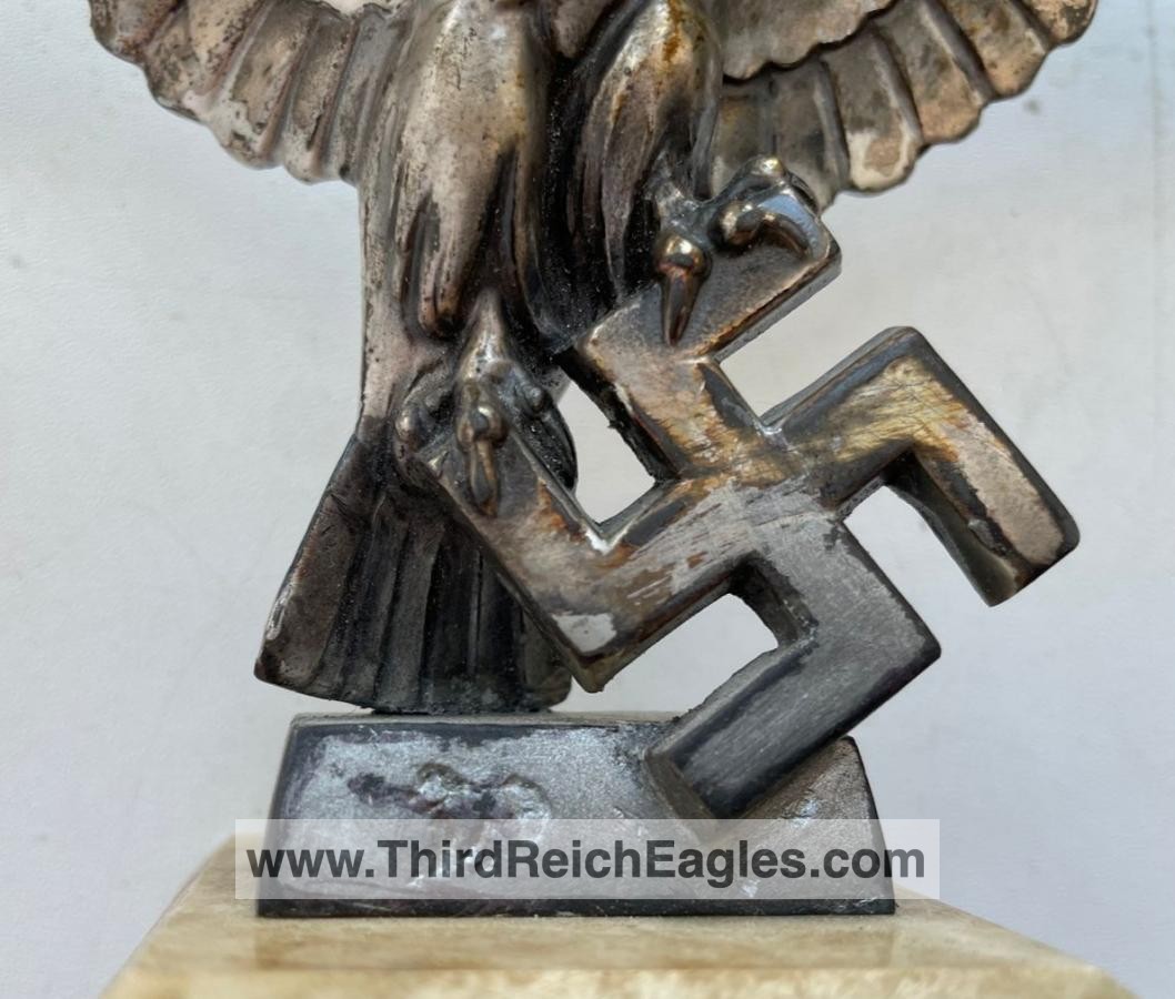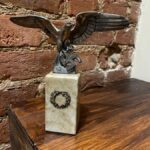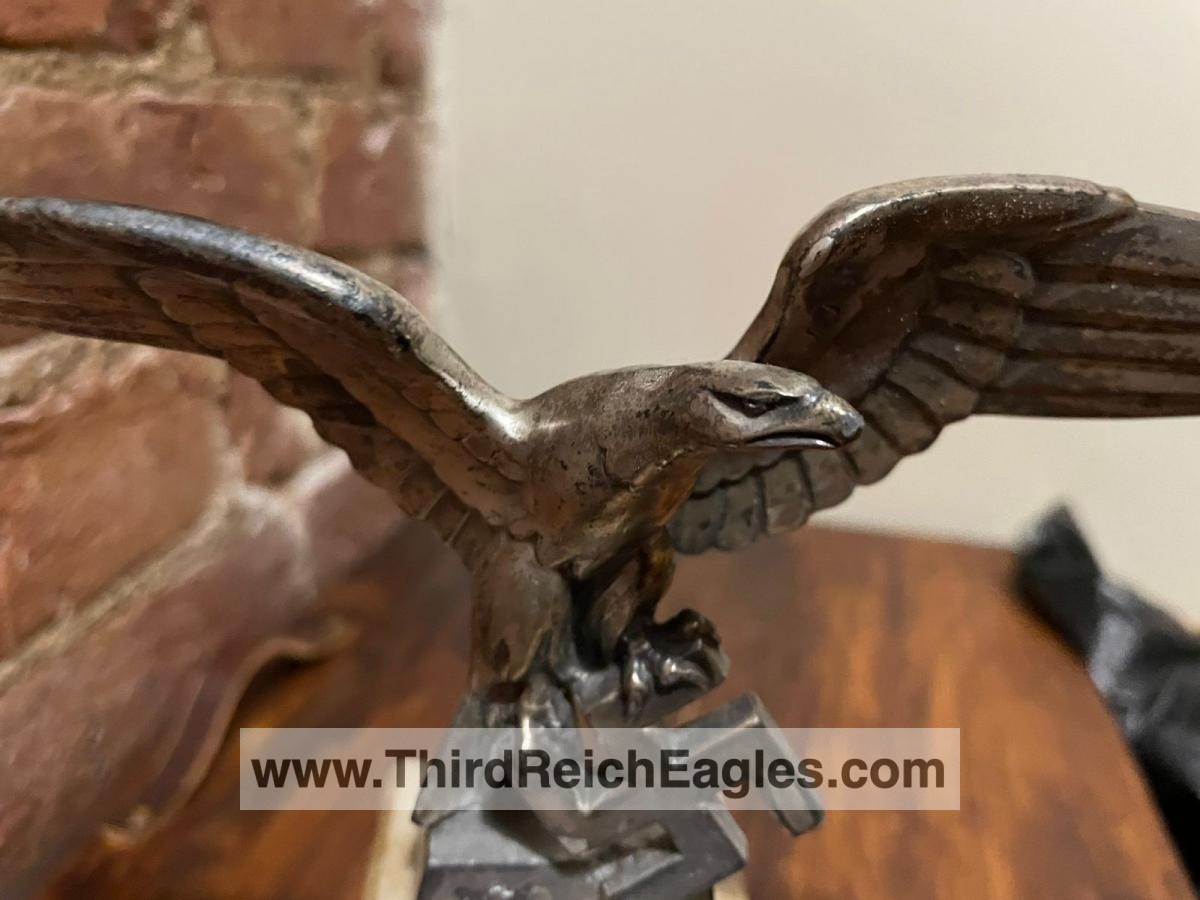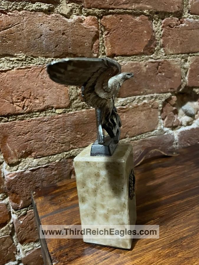 Left facing Luftwaffe desk eagle with out-stretched wings perched upon the running swastika.