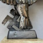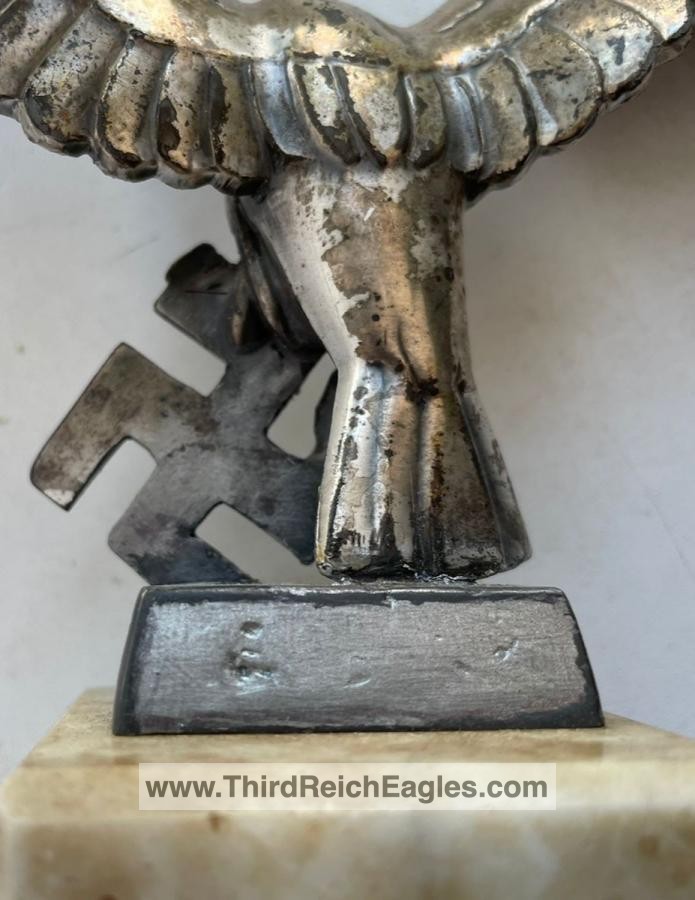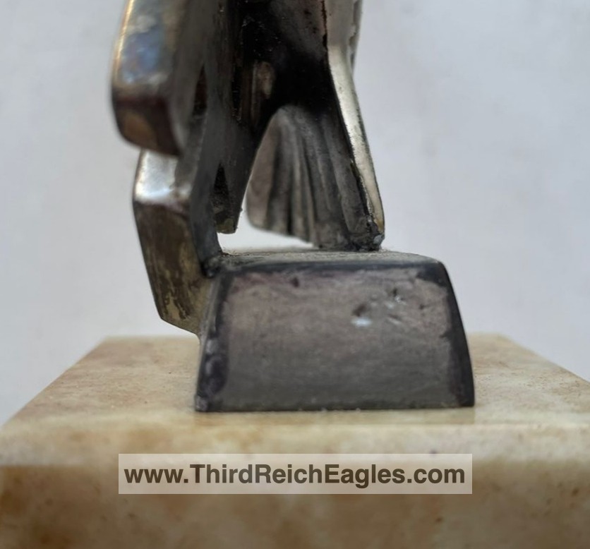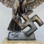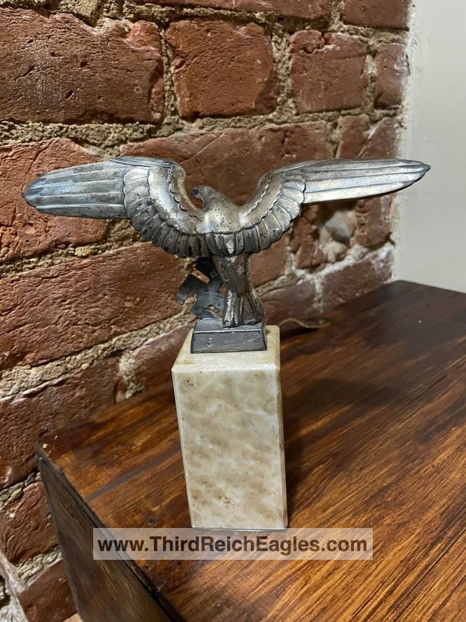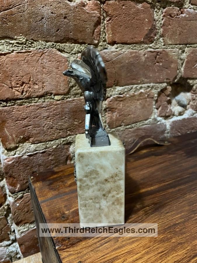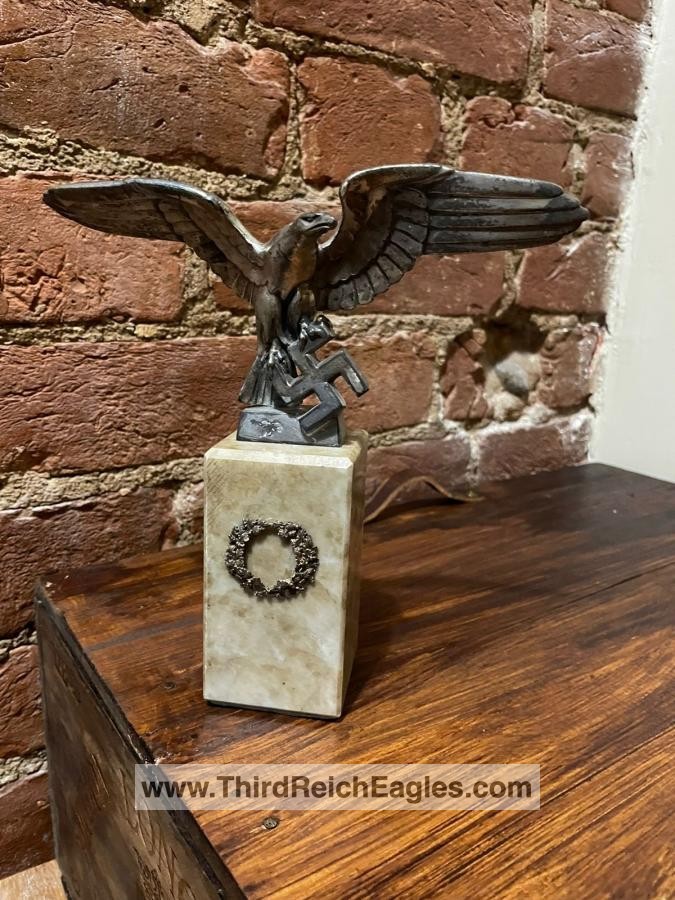 Left facing Luftwaffe desk eagle with out-stretched wings perched upon the running swastika.