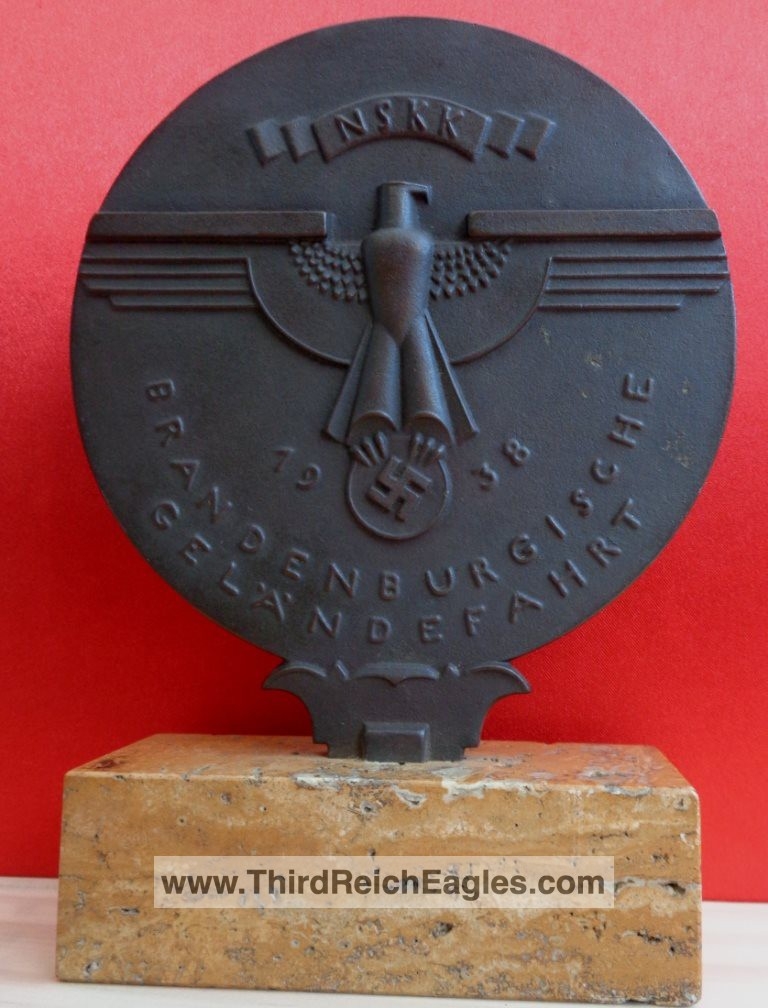 There are a number of different examples of the NSKK desk eagle, all however share the same stylized NSKK banner over the top of the outstretched wings with the NSKK inscription on one side of the banner only.