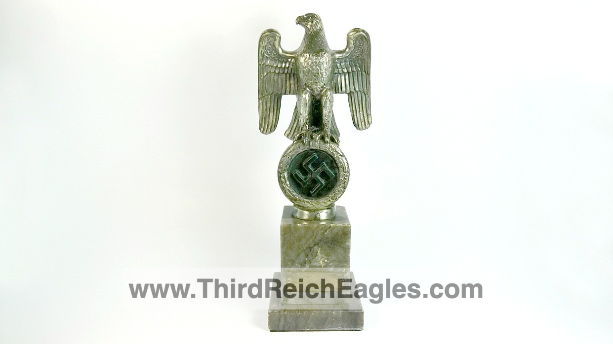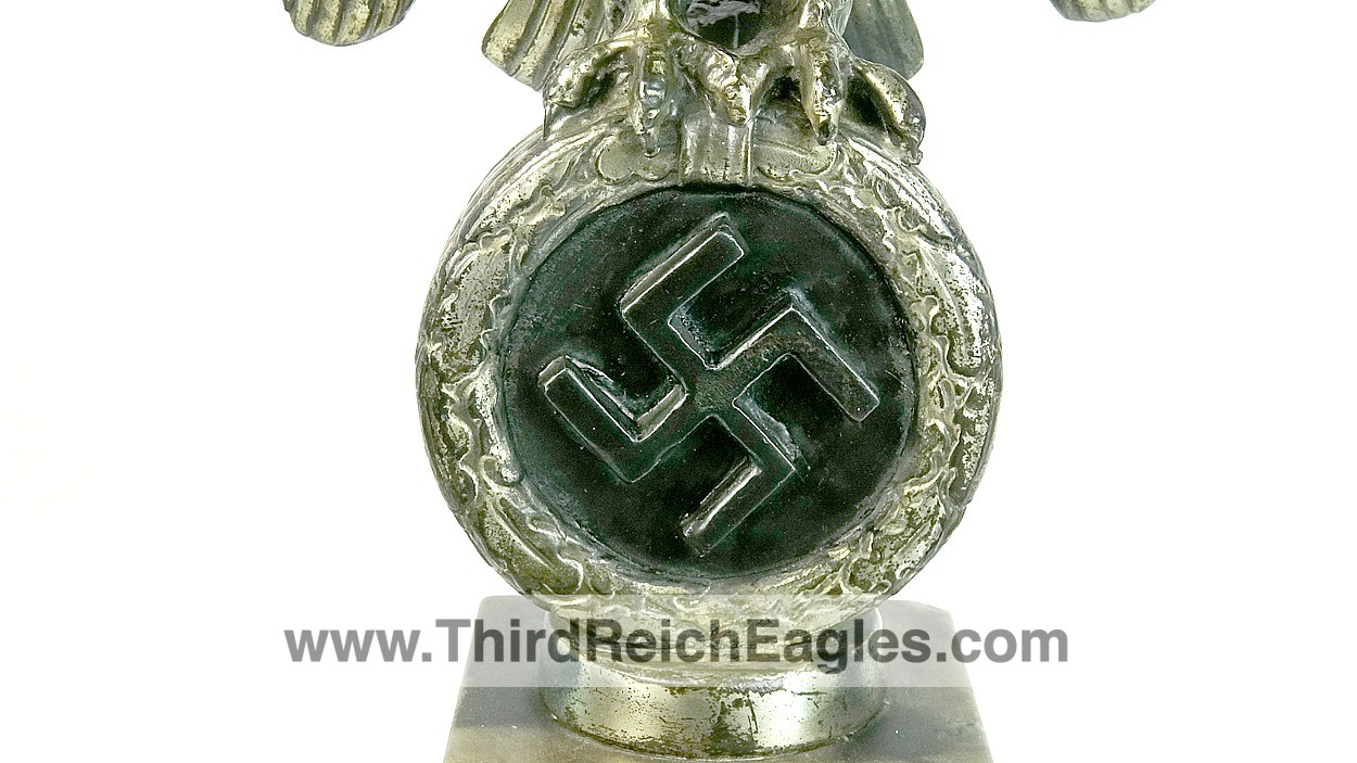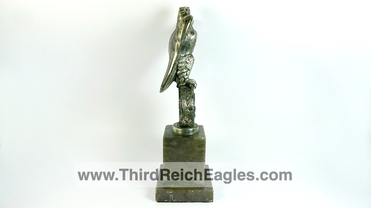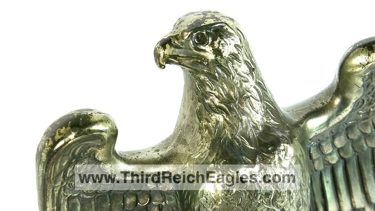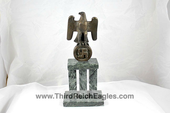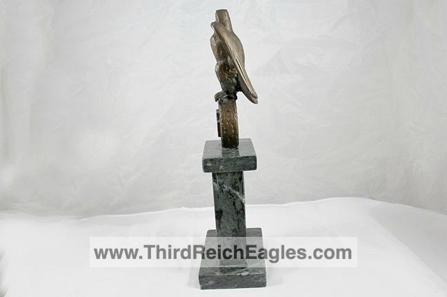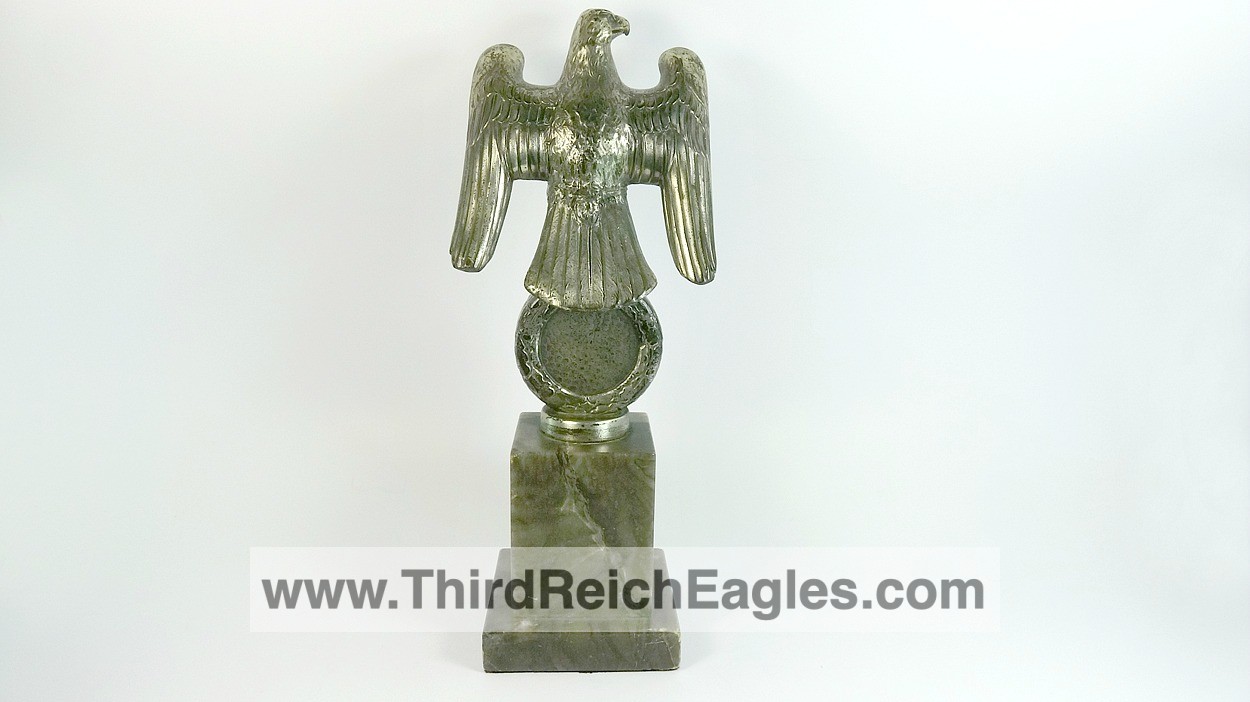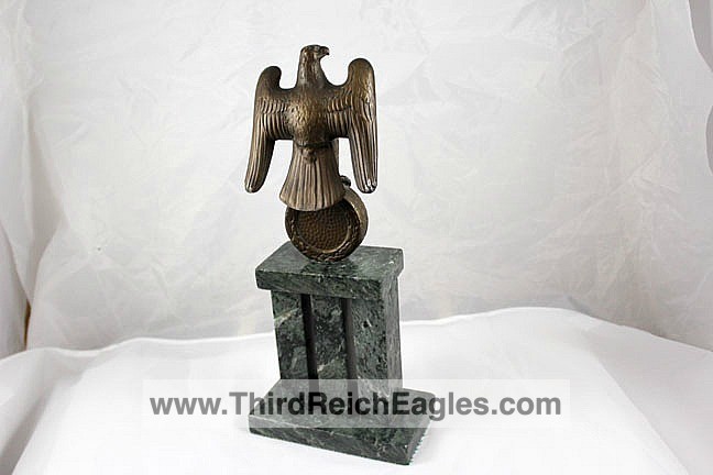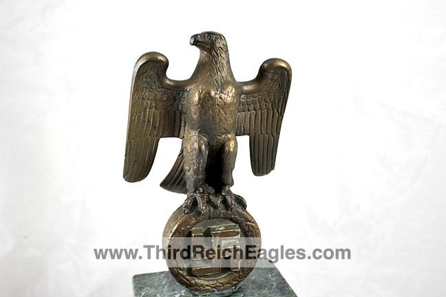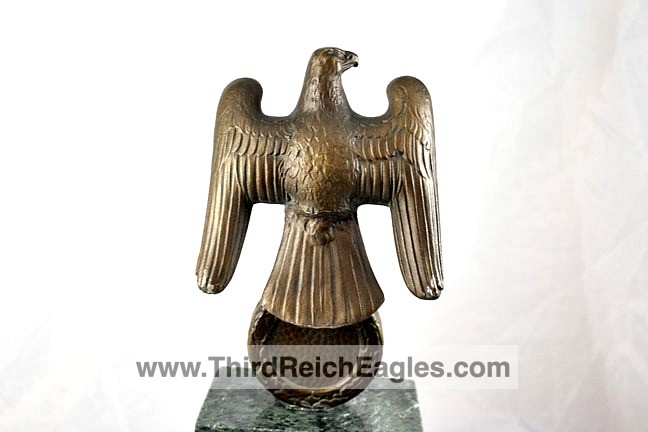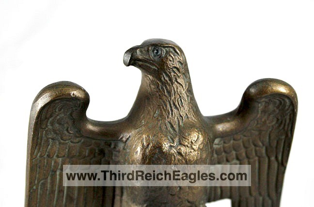 These Rank & Fritz desk eagles are a distinctive style of desk eagle with the head facing right. Similar in design to the Reichs Luftministerium eagle.
