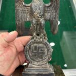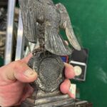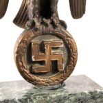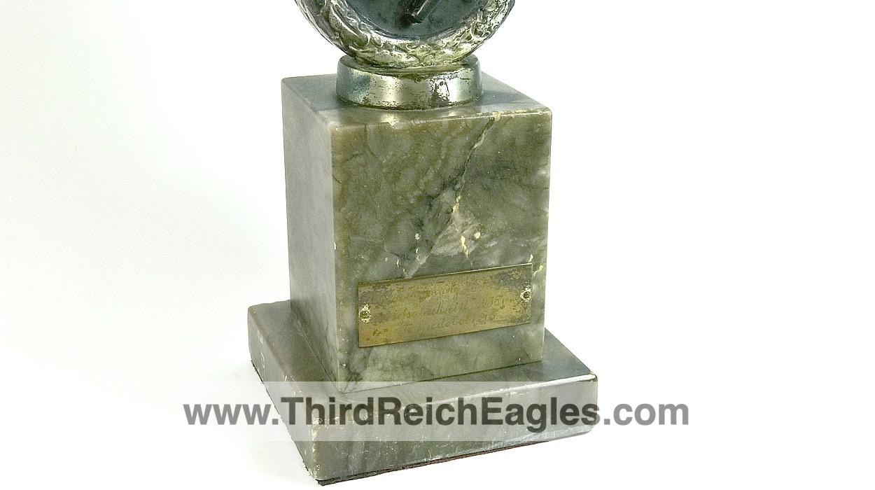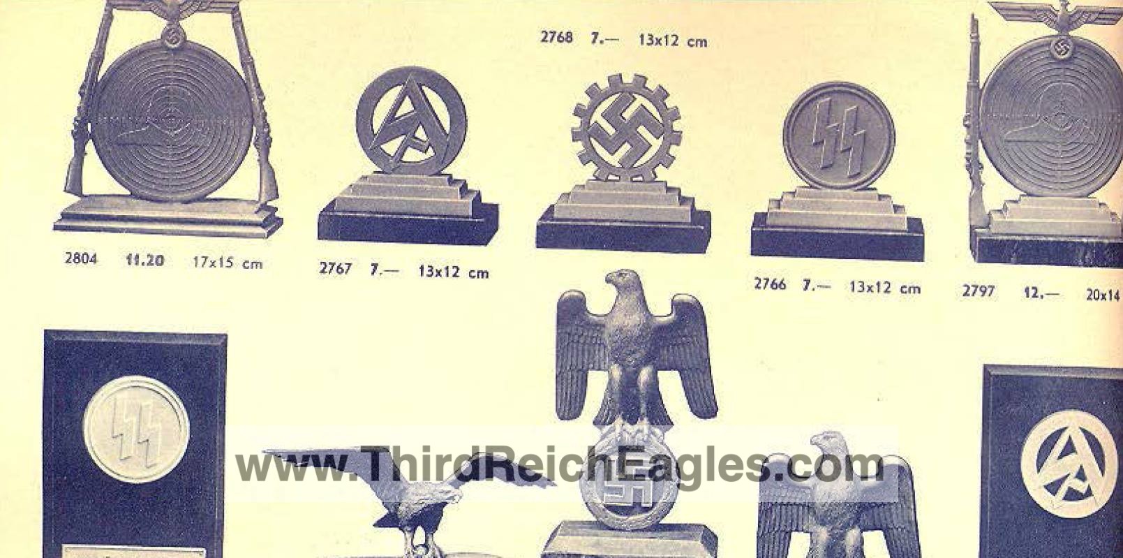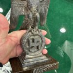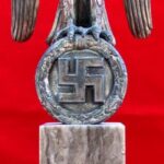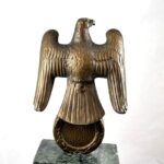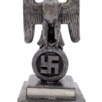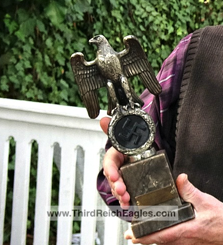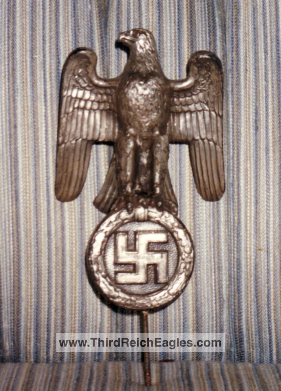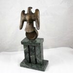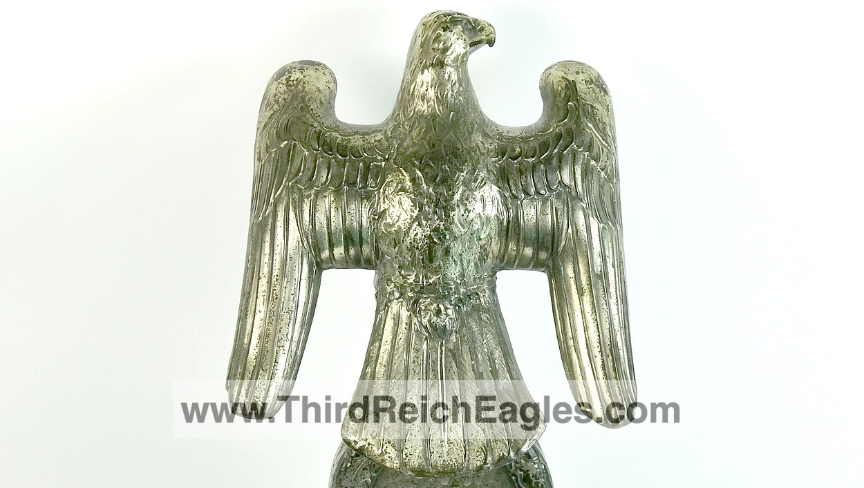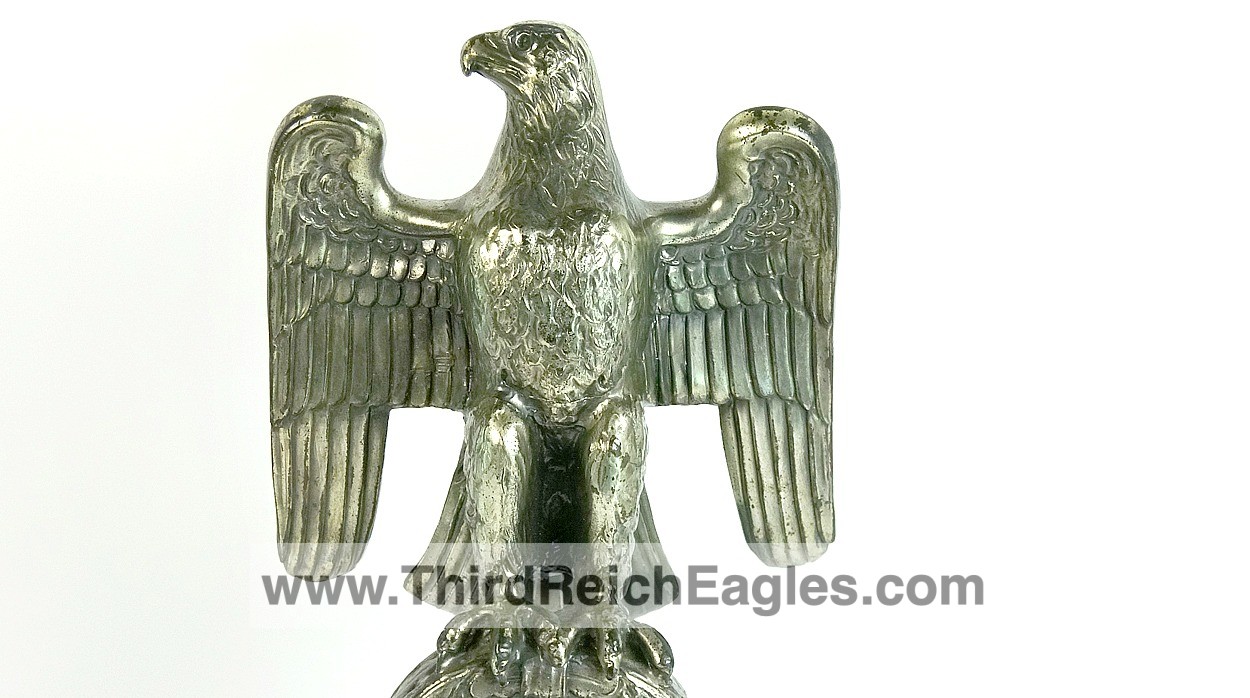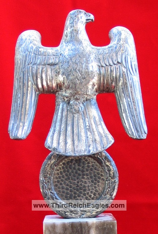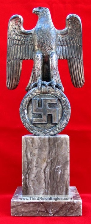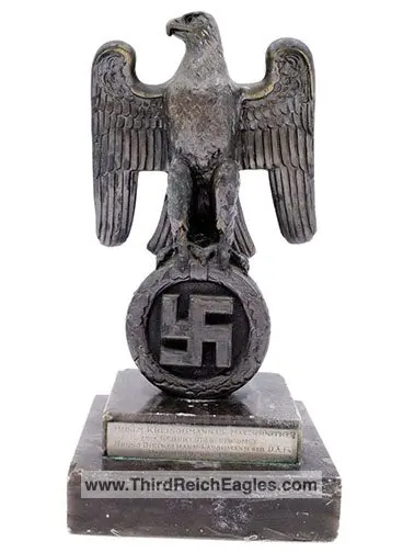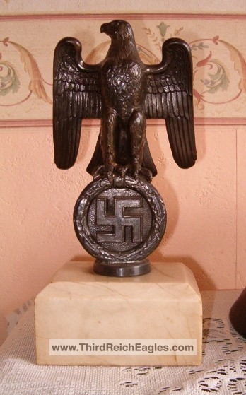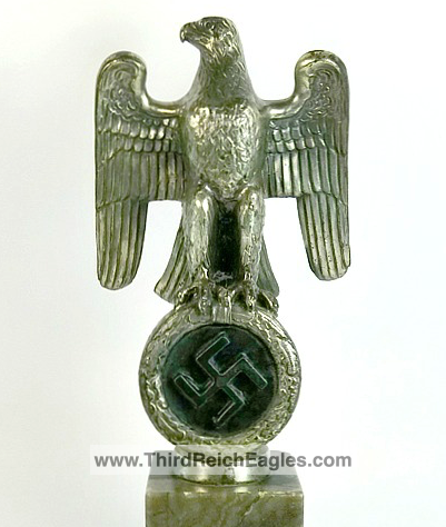 These Rank & Fritz desk eagles are a distinctive style of desk eagle with the head facing right. Similar in design to the Reichs Luftministerium eagle.