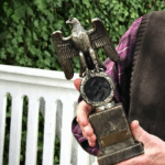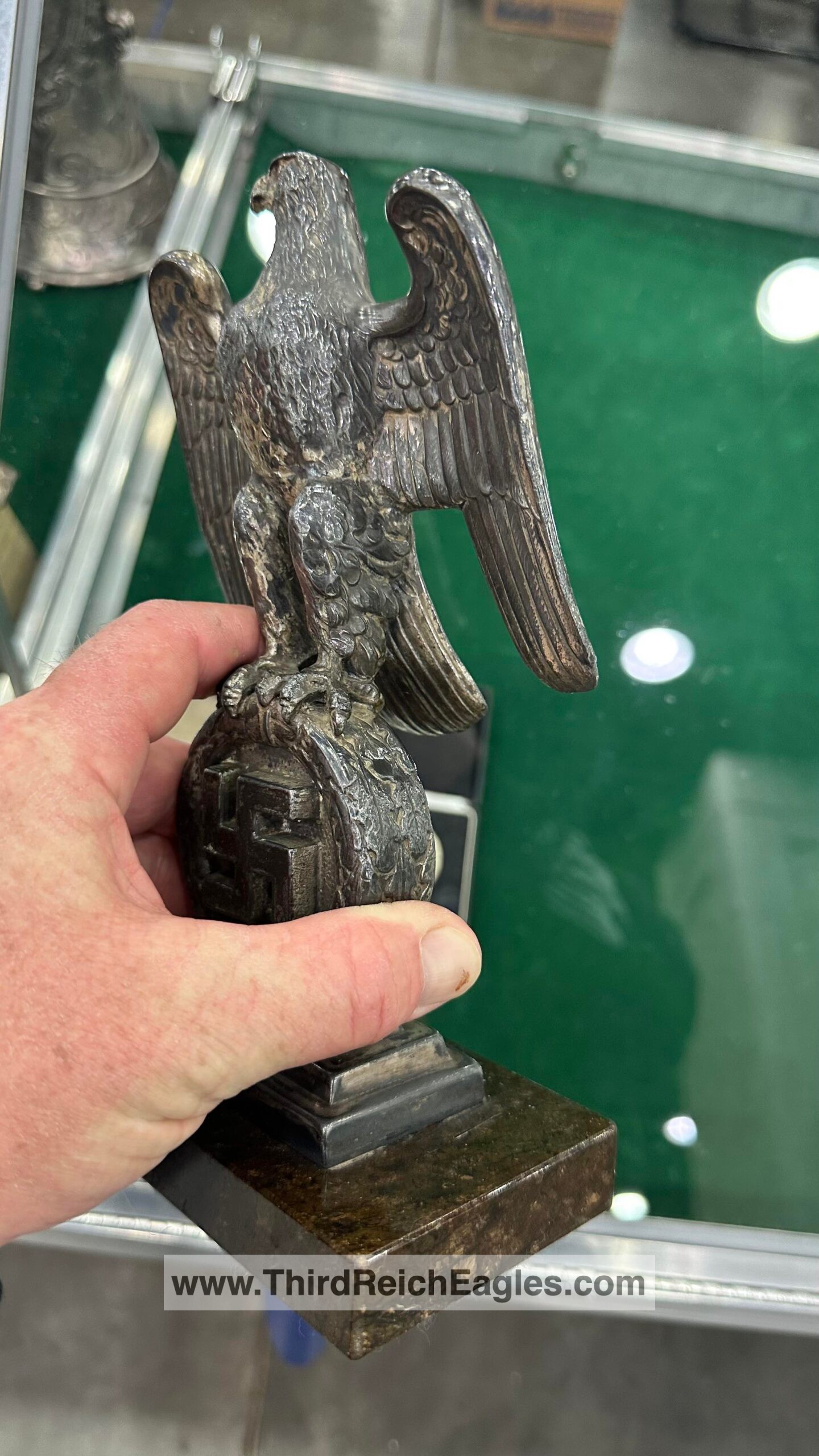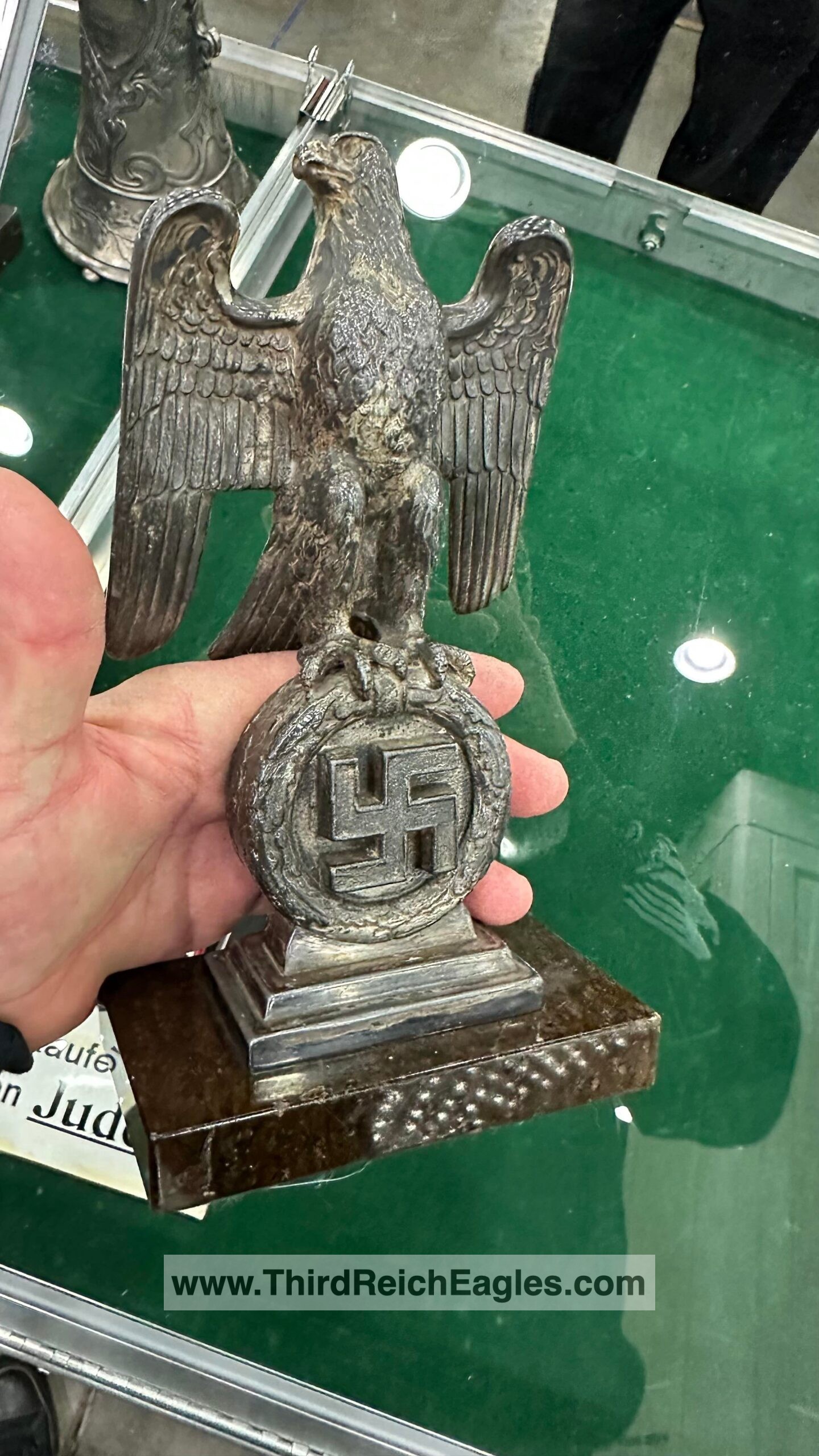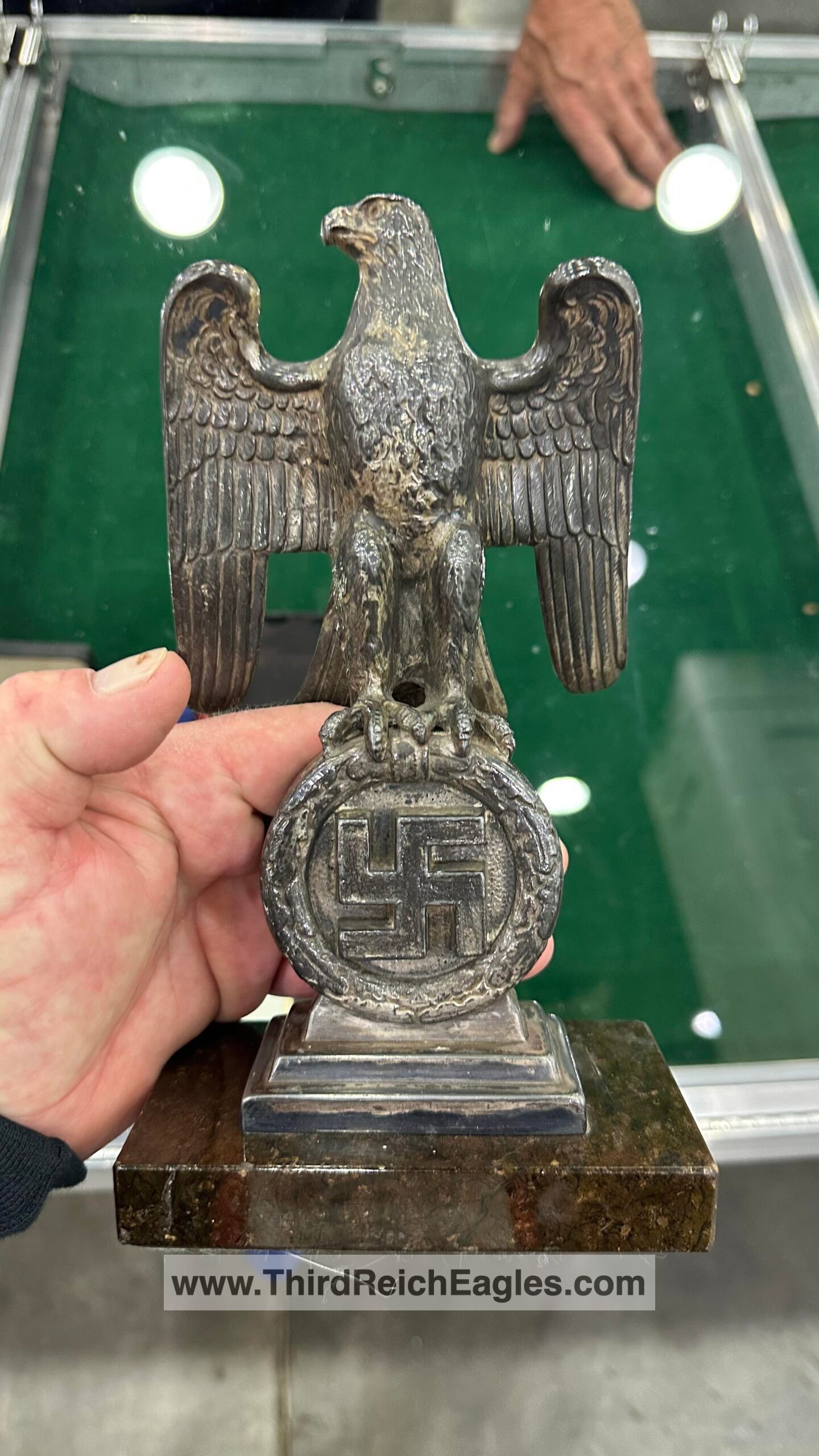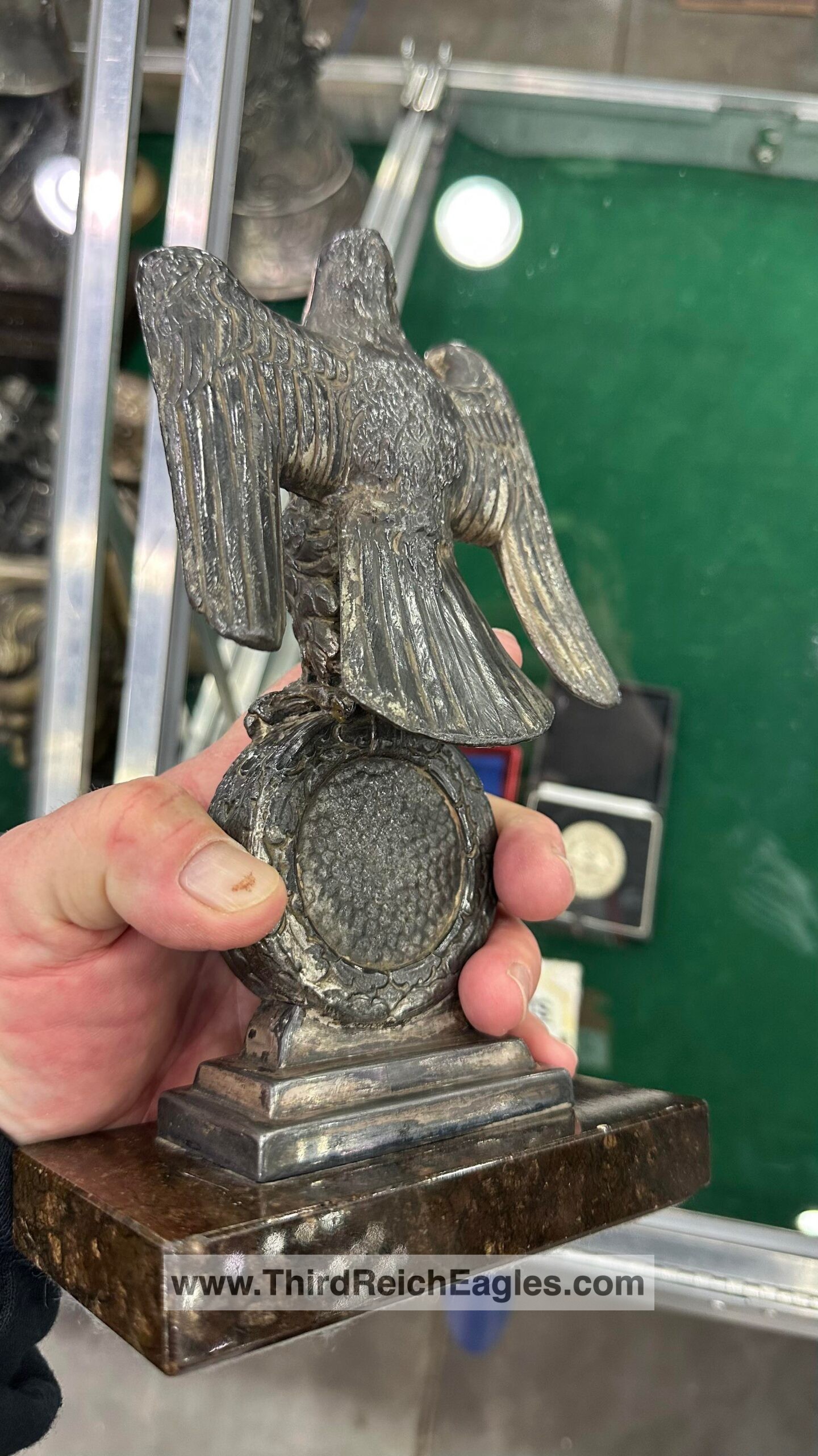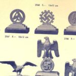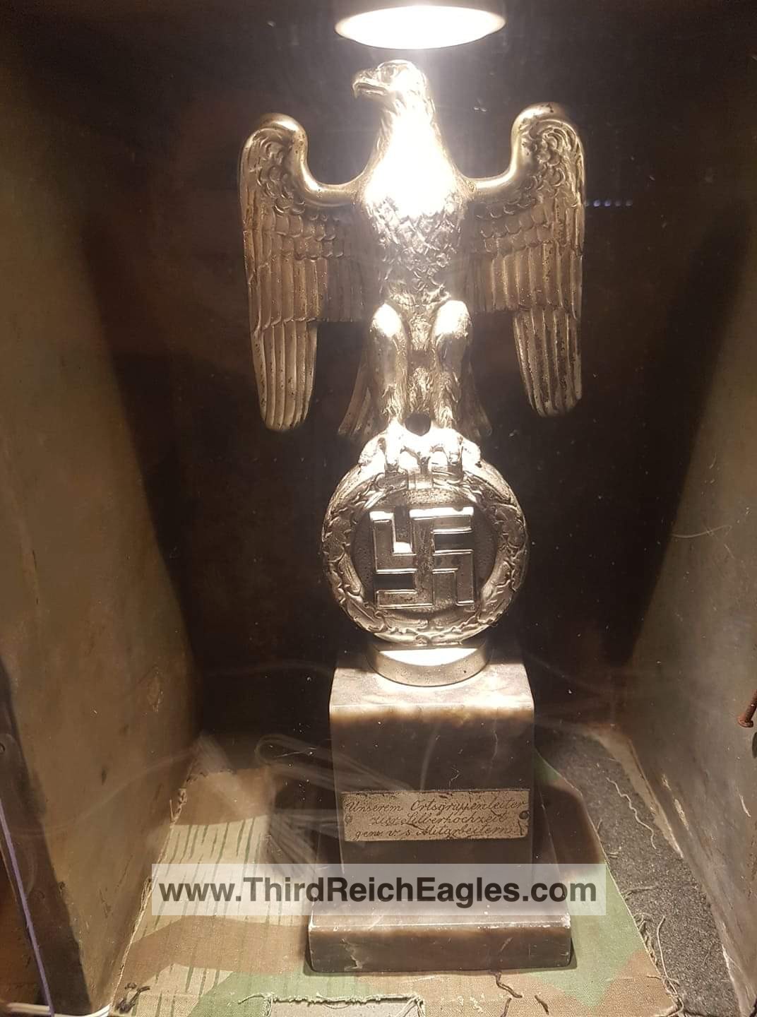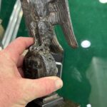 These Rank & Fritz desk eagles are a distinctive style of desk eagle with the head facing right. Similar in design to the Reichs Luftministerium eagle.