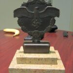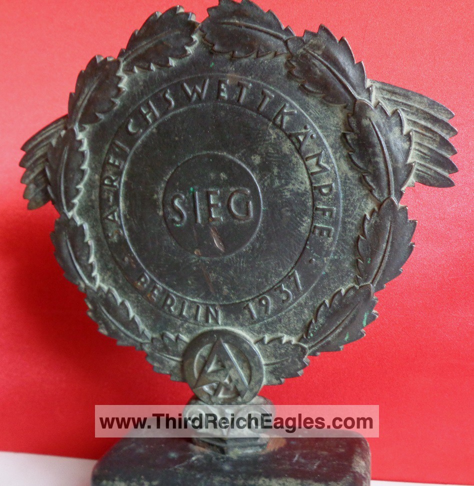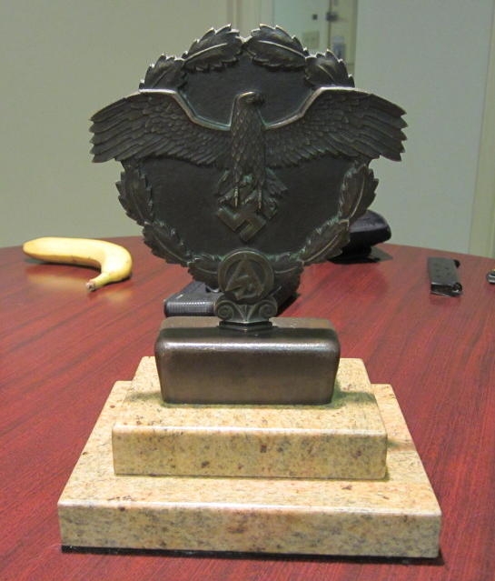 Max Esser SA Eagles > Desk Eagles > Political/ Other Desk Eagles > Max Esser SA Availability: rare Maker: Max Esser Size: Wingspan approx: 7 1/2 Inches, Height approx: 6 1/2 inches Material: Fine bronze Description: This is an early prize. Pics: