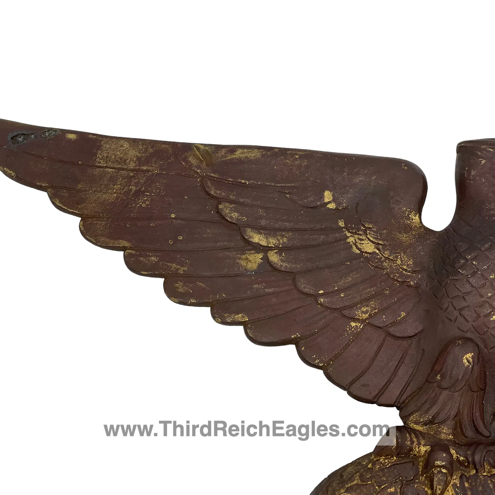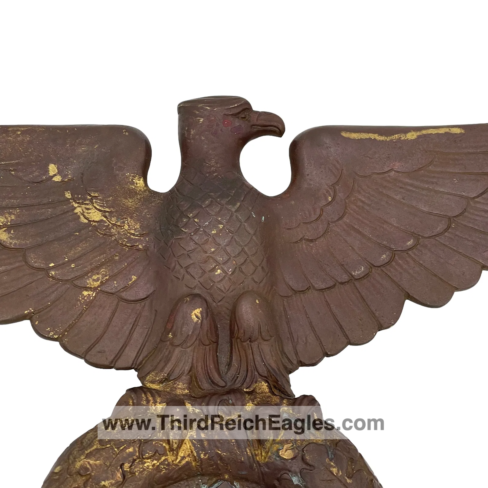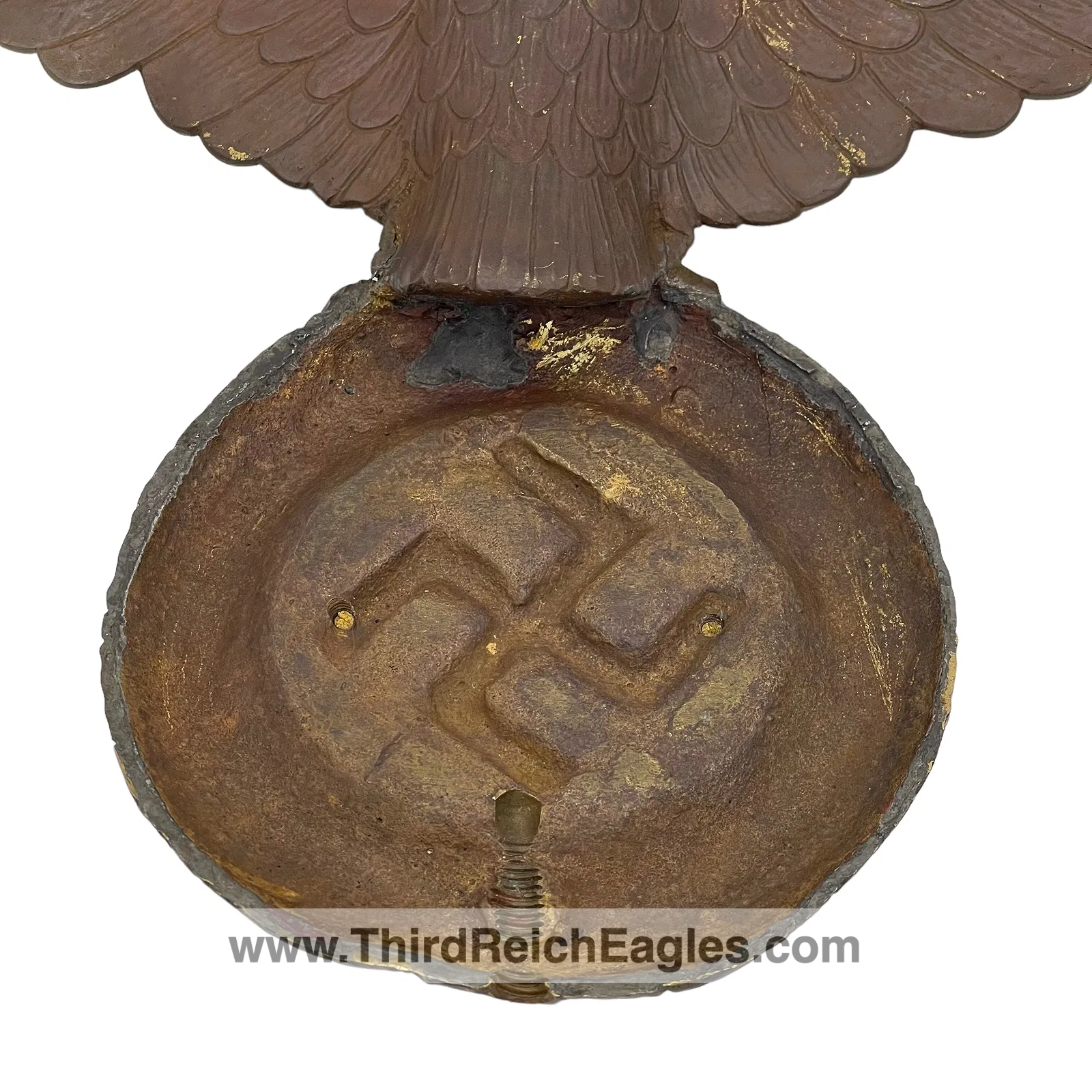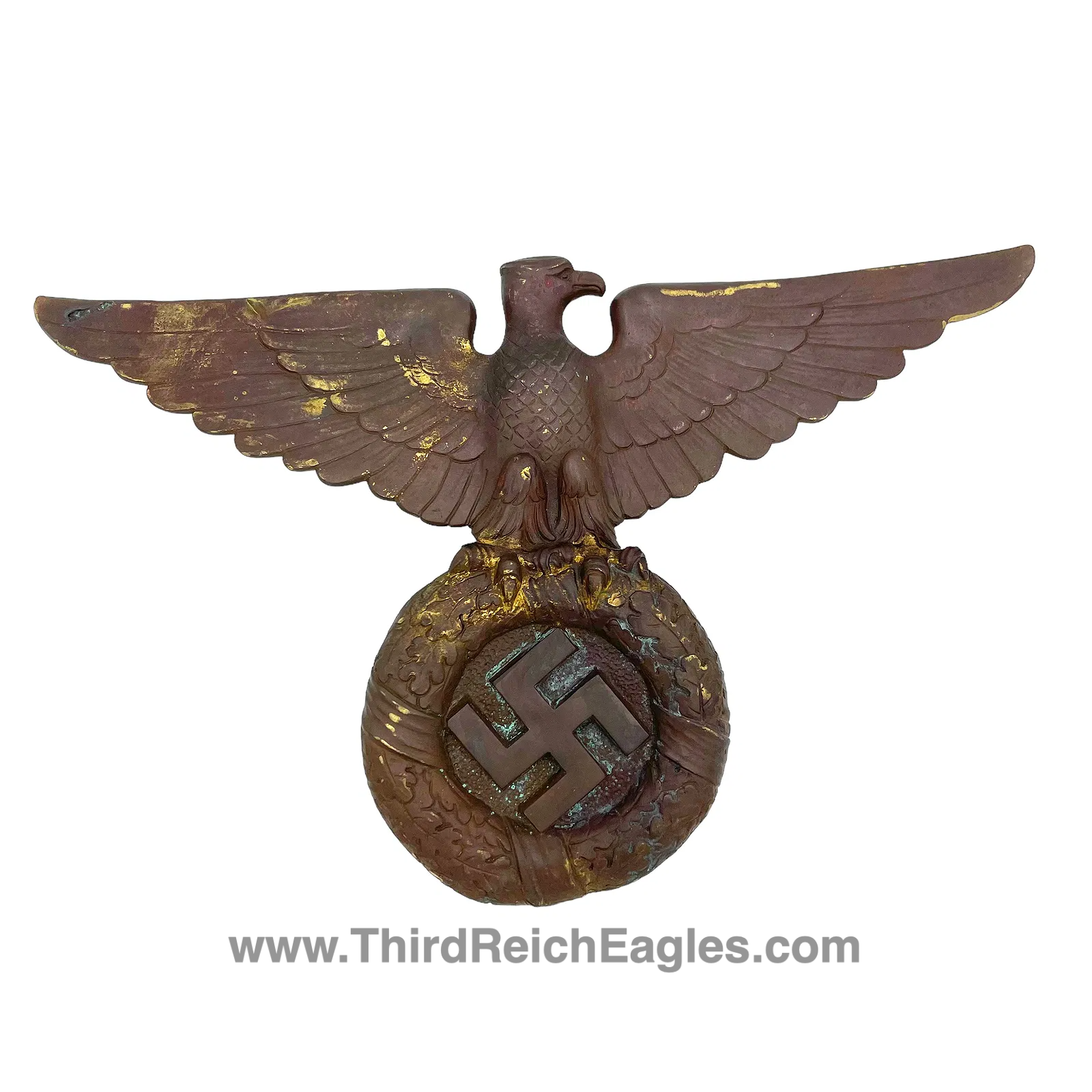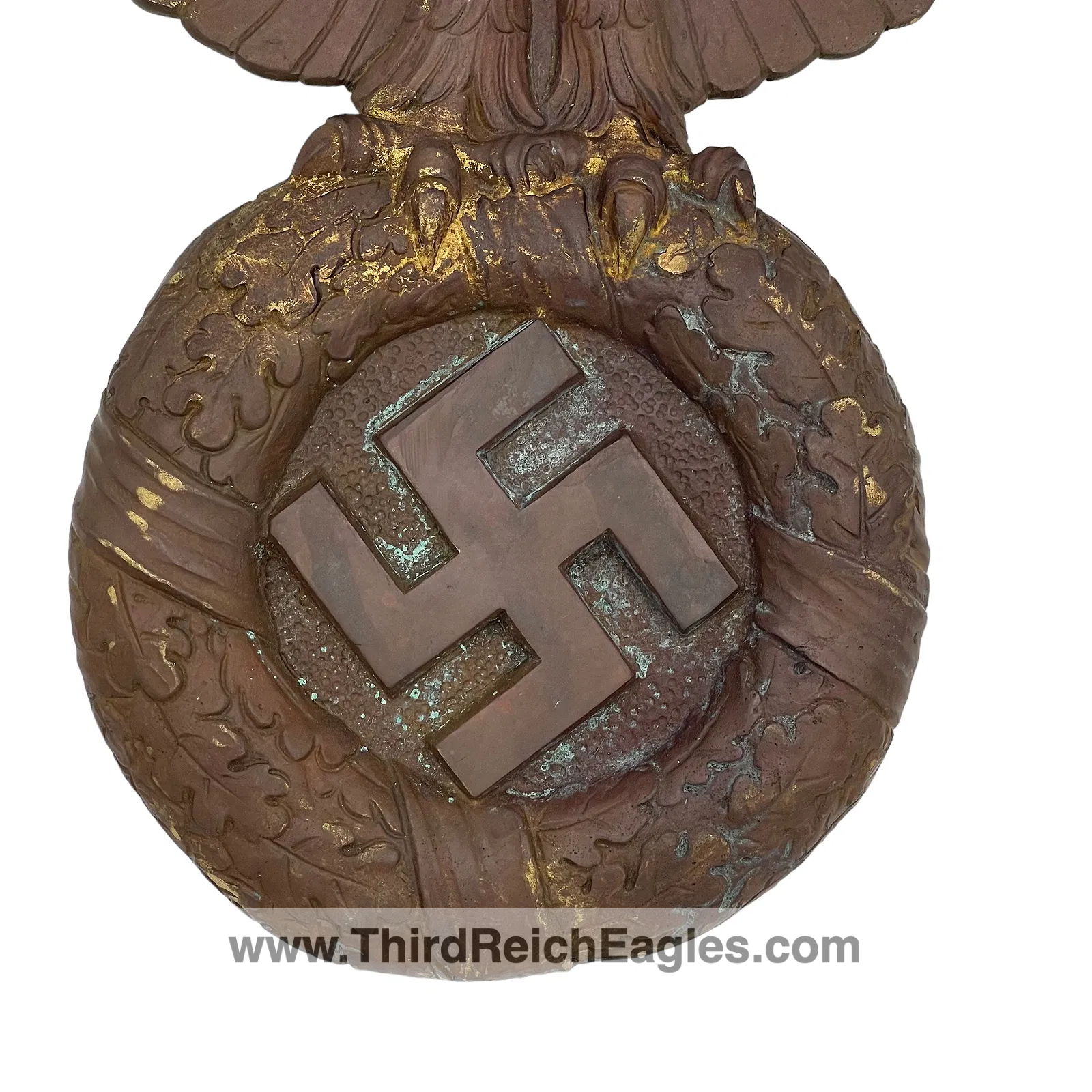 Reportedly found in the early 1990s when graves were being reburied at St. Mary’s and St. Nikolai Cemetery I in Berlin (There is also the former grave of Horst Wessels), Remnants of a thread on the underside of the EL wreath, somewhat bent, on the reverse. at the beginning of the fangs kl. Crack, patination partly gone, Size: 36.5 x 22cm, Weight: 1.8 kg