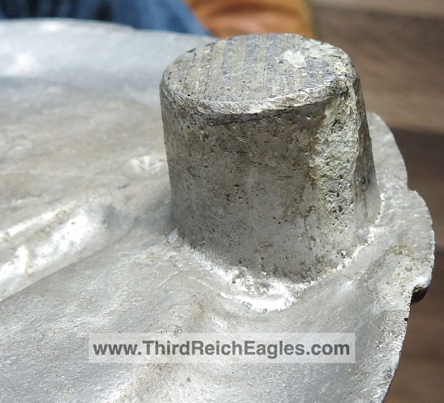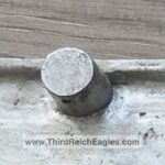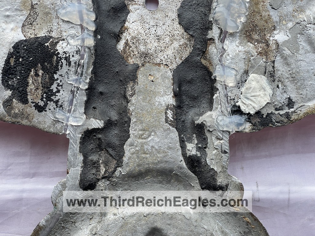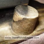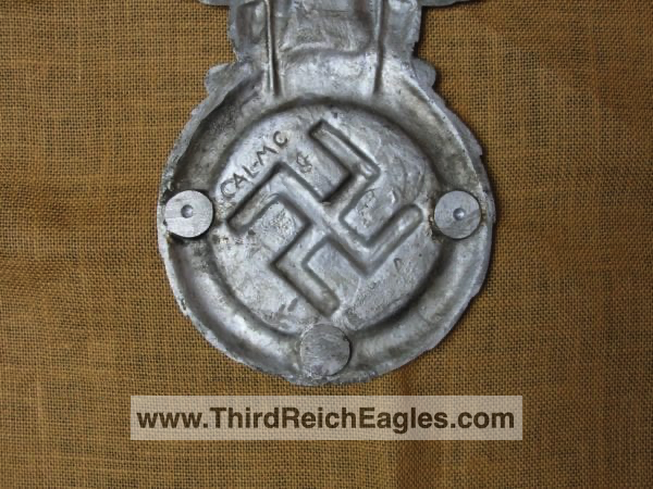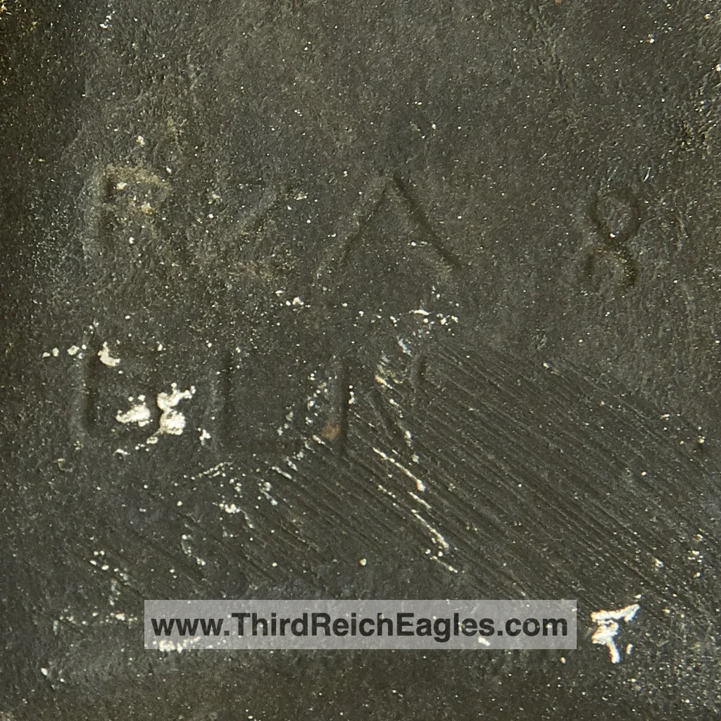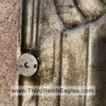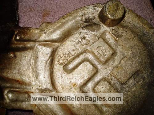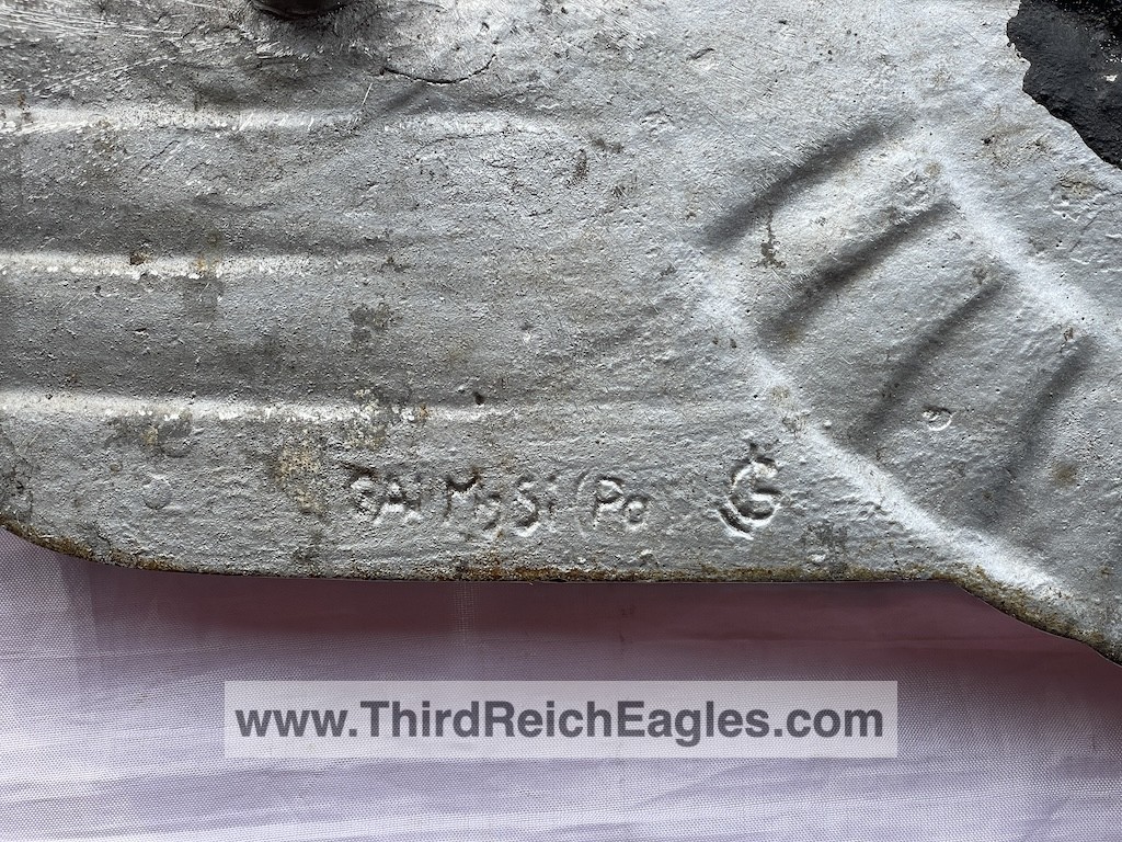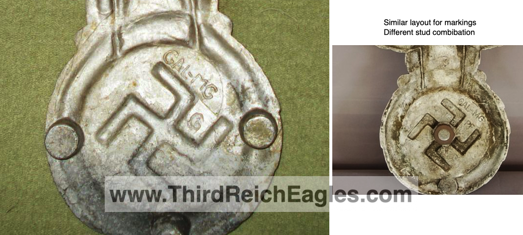 These letter markings are indented and combined, found on the left hand side of the swastika (reverse of eagle). Positioned above this mark is also the GAL-MG material designation.
