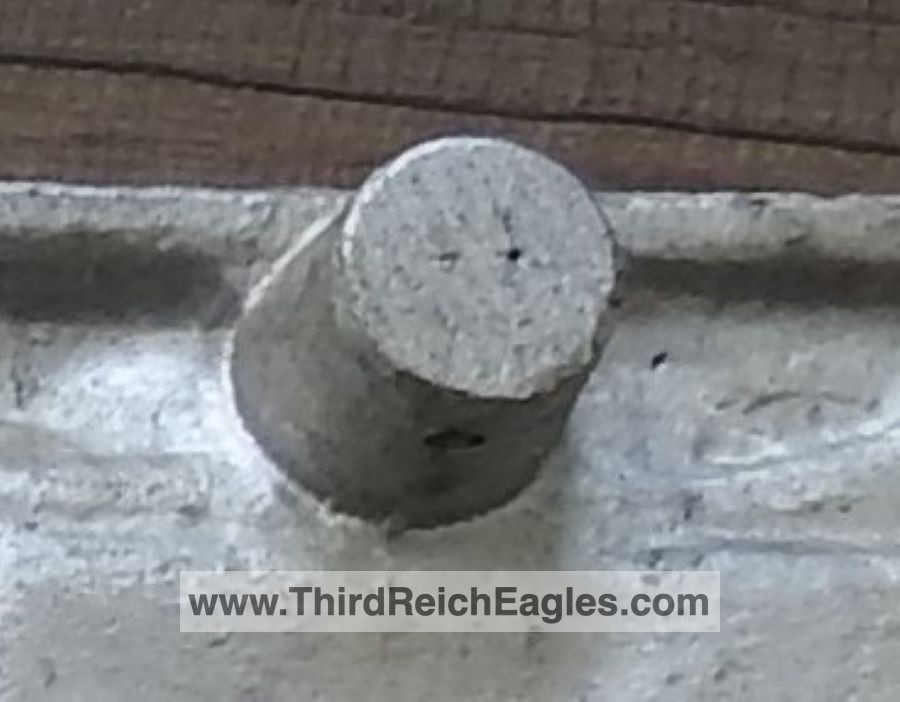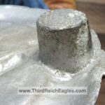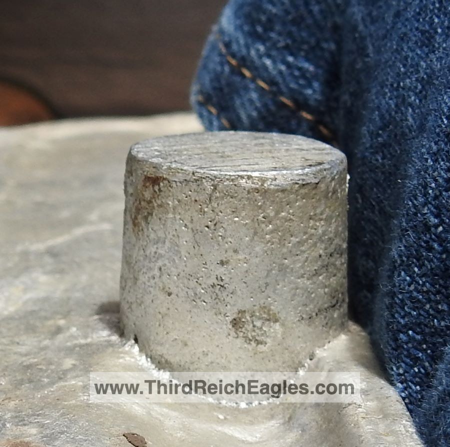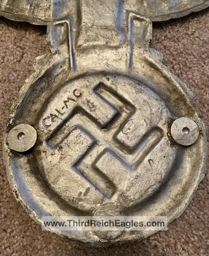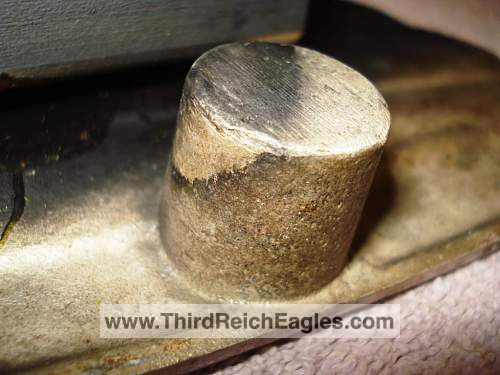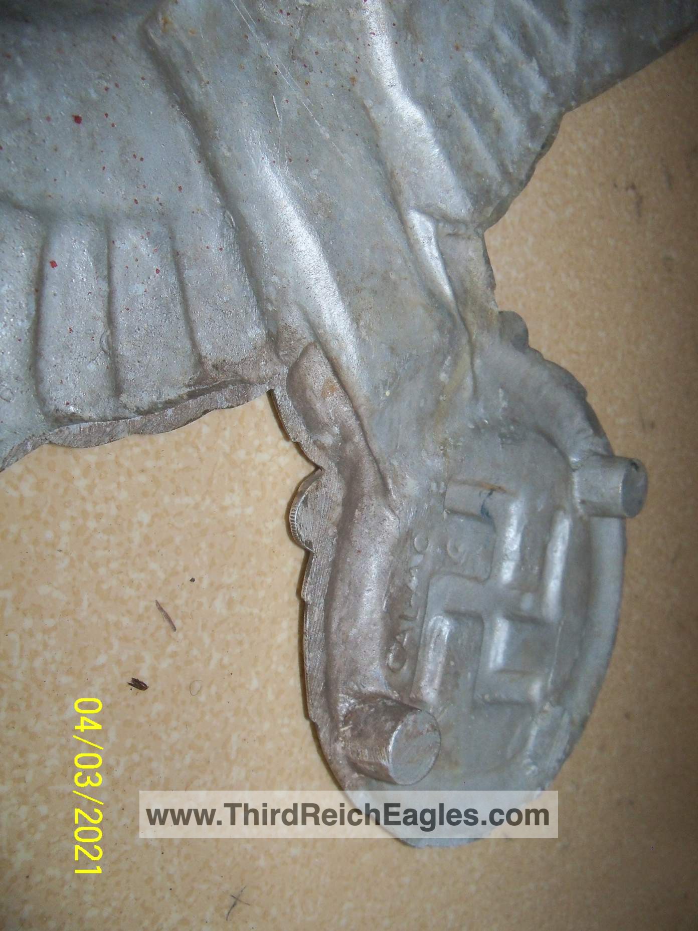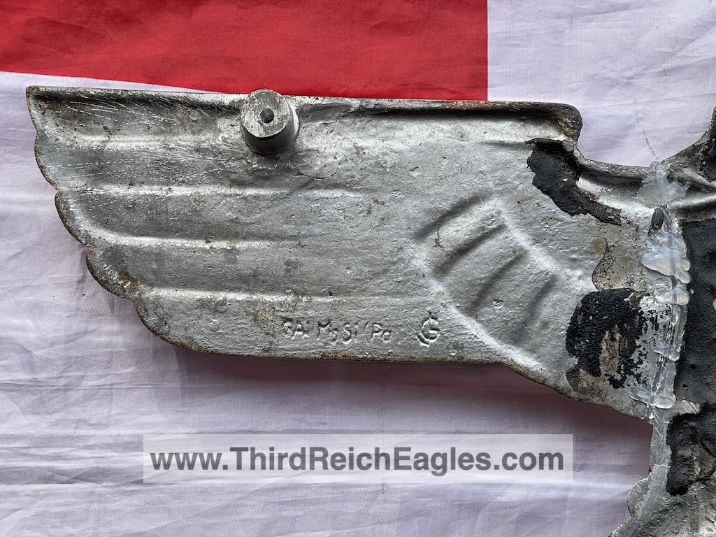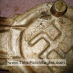 These letter markings are indented and combined, found on the left hand side of the swastika (reverse of eagle). Positioned above this mark is also the GAL-MG material designation.