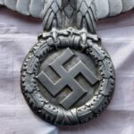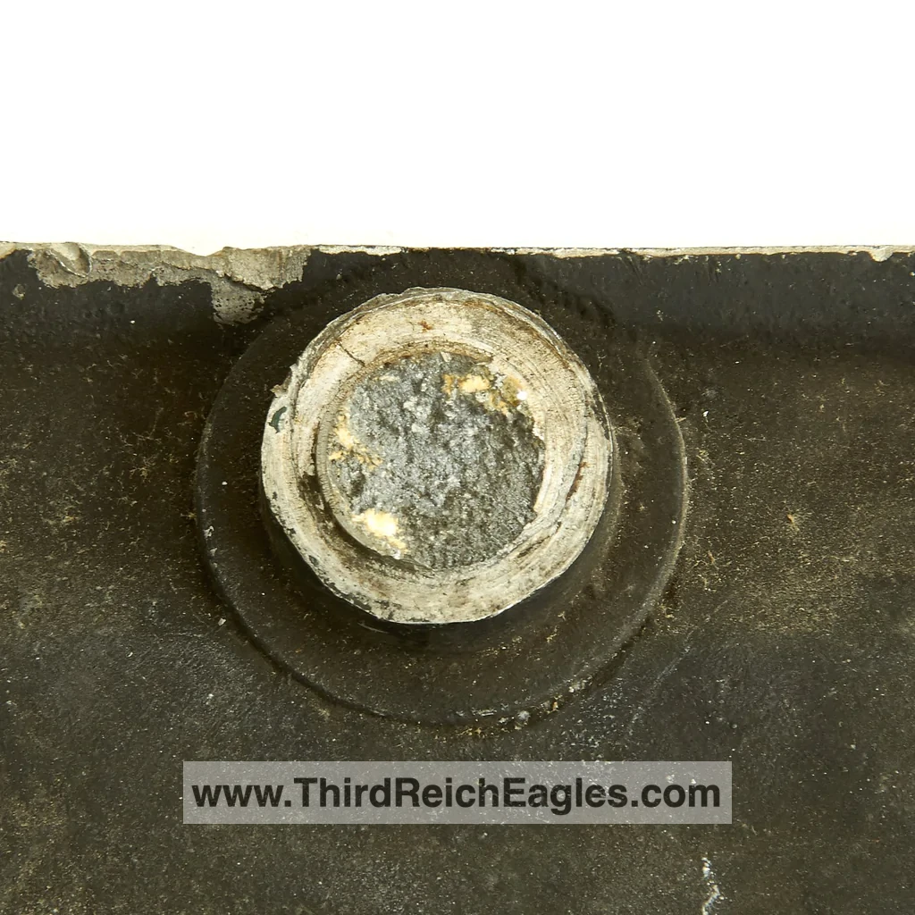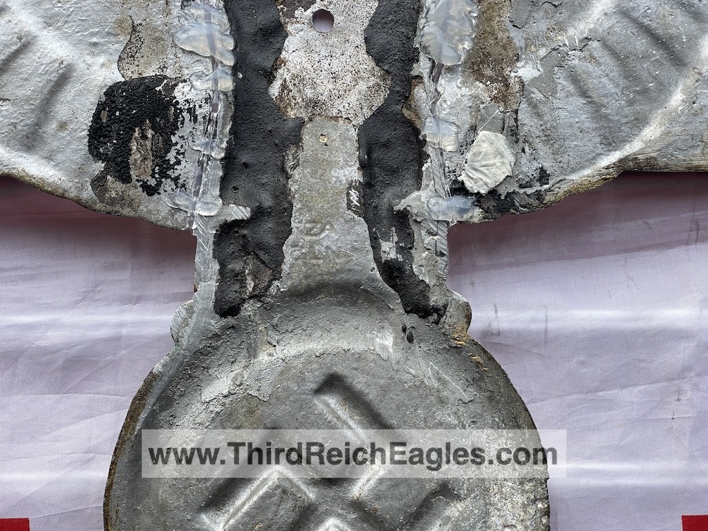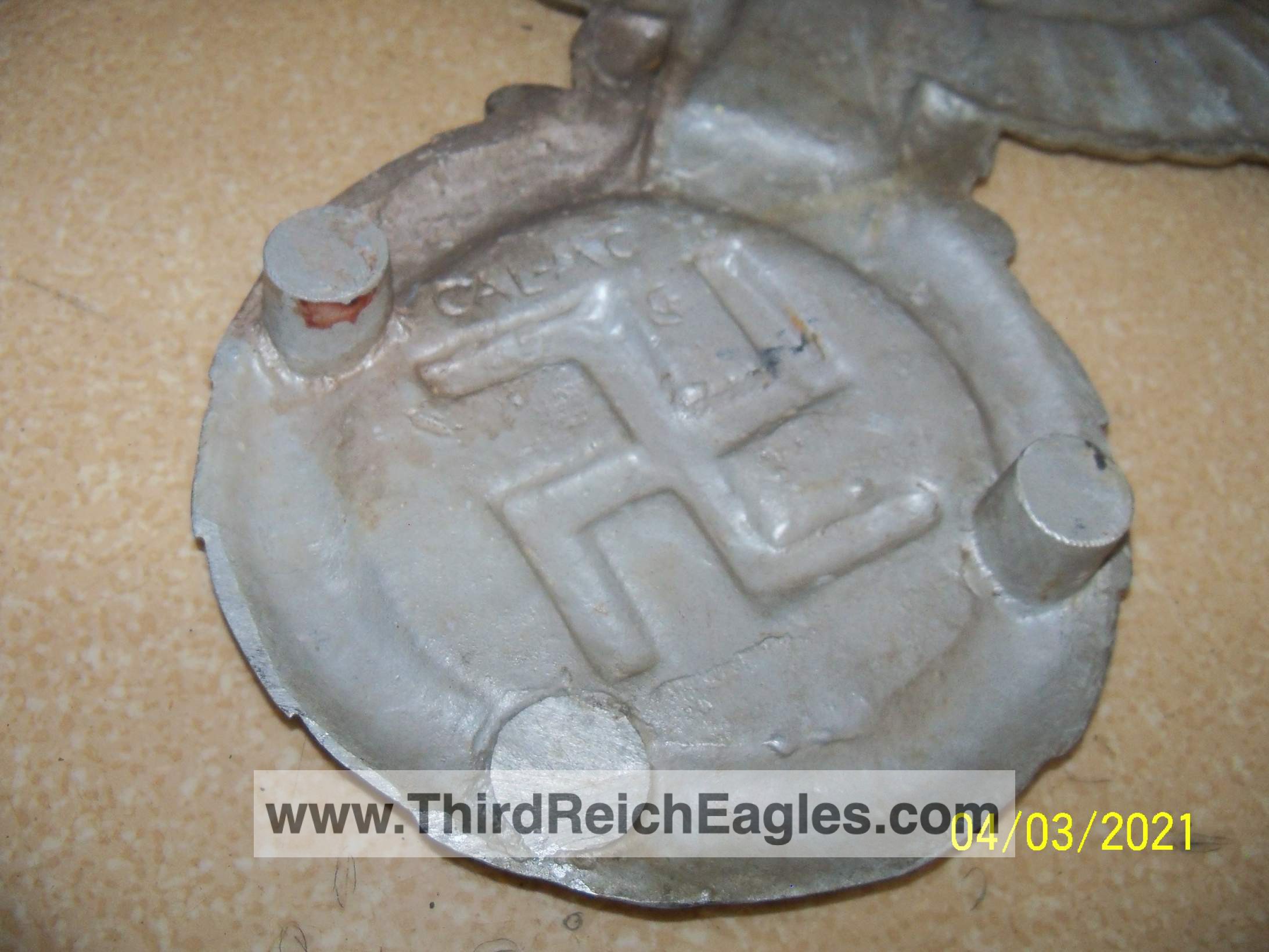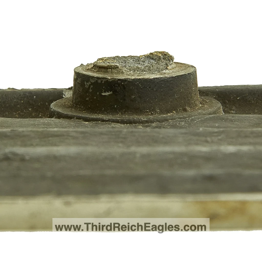 These letter markings are indented and combined, found on the left hand side of the swastika (reverse of eagle). Positioned above this mark is also the GAL-MG material designation.