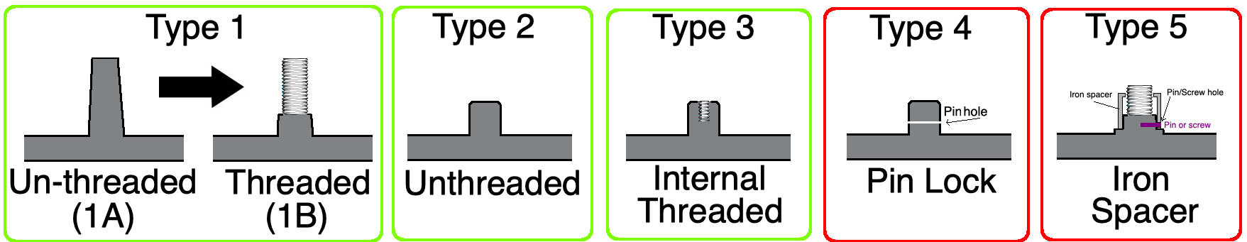 The bolt configuration for both sizes is 5 Bolts Type 1.
