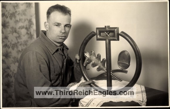 The RDHdw came about from the Handwerks, Handels und Gewerbe Organisierung = National Socialist Handicraft, Commerce and Industry Organization), which was created in 1933, out of the earlier “Kampfbund des Gewerblichen Mittlestandes” (Fighting]-league of-the Industrial Middle-classes). In 1934 it fell under the DAF, (Deutsche Arbeitsfront) (German Labor-front), control and eventually the ‘Gesamtverband des deutschen Handwerks, Handels und Gewerbes’ (Total-association of-the german Handicrafts, Commerce and Industry), which beca me the RDHdw, “Reichsstand des deutschen Handwerks” (National-class of-the german Handicrafts). The organisation survived the war and continued to exist till 1994.