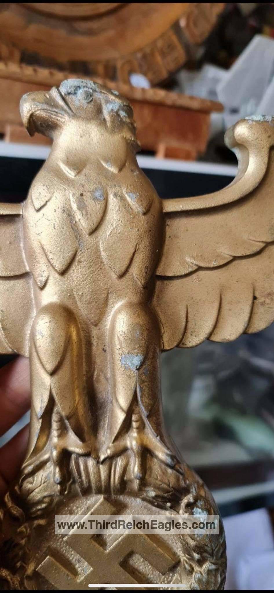 Size: ca. 70 x 34 cm.Highly polished cast eagle in high relief. Bar attachment on reverse for wall mounting.
