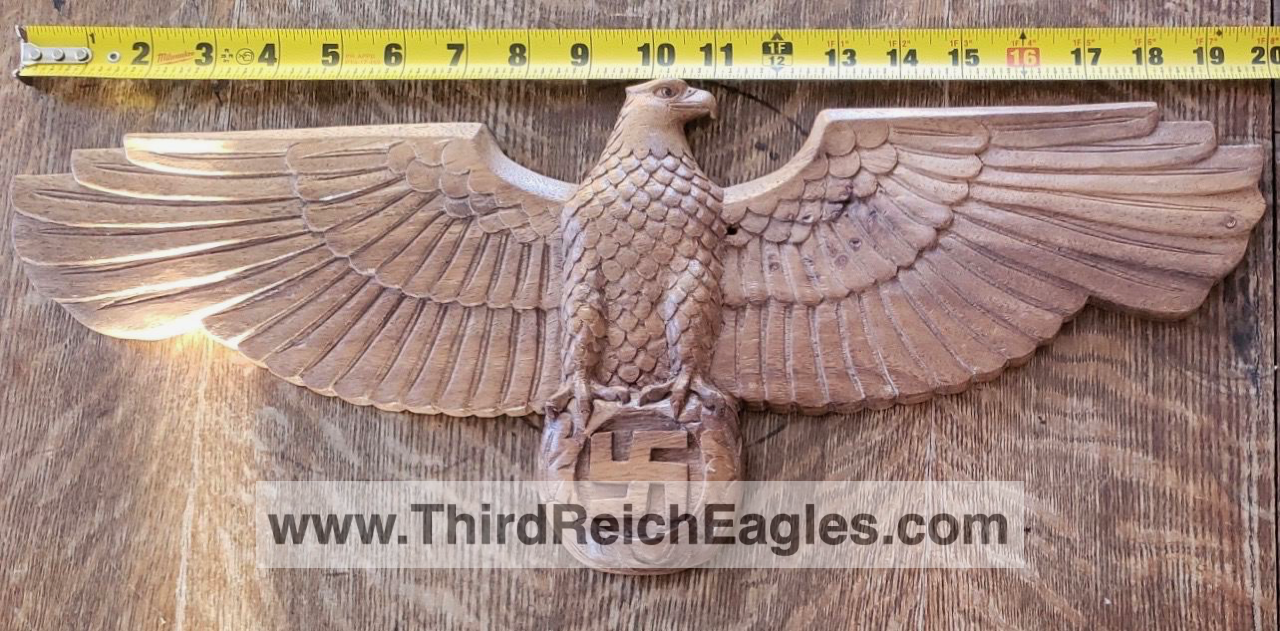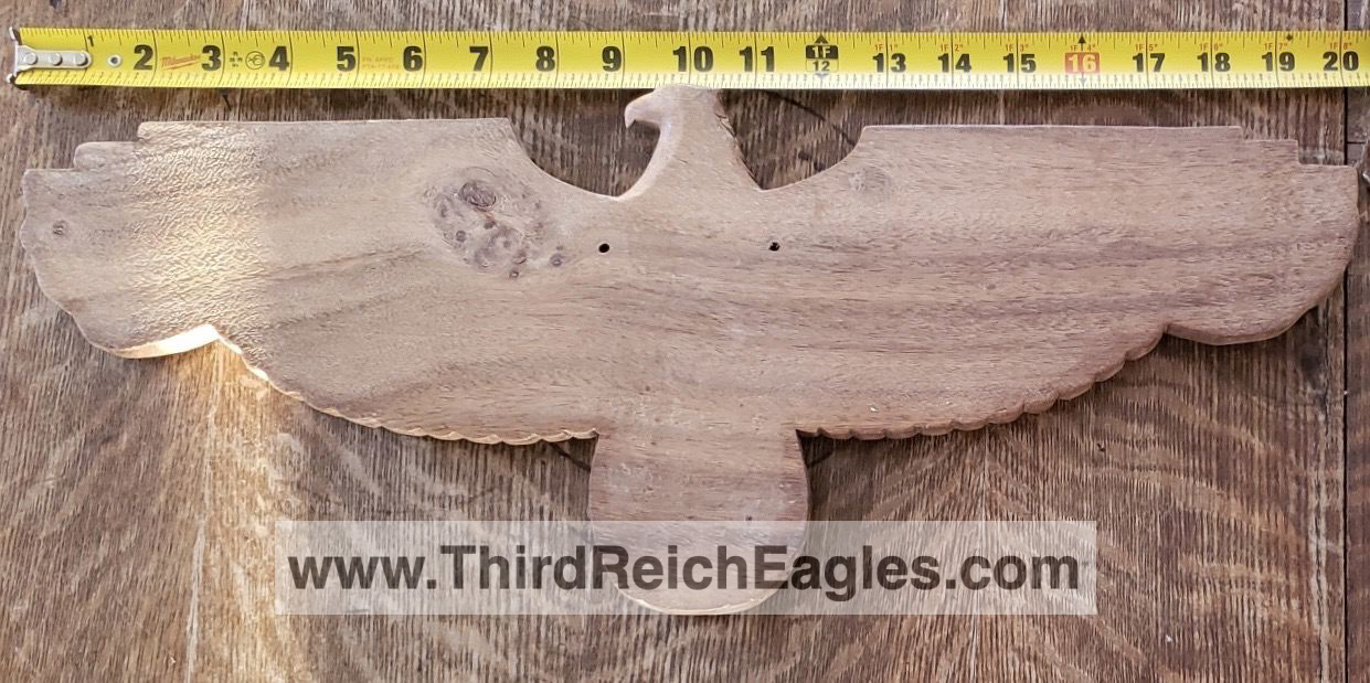 A large volume of wooden eagles were produced during the third reich era. Due to their material many were easily damaged or destroyed during or immediately post the war. Given the ability to easily reproduce or copy these eagles they can be harder to authenticate and many copies are passed off as original. There are some common, easy verified styles and many have makers marks or stamps fortunately making authenticating some easier.