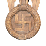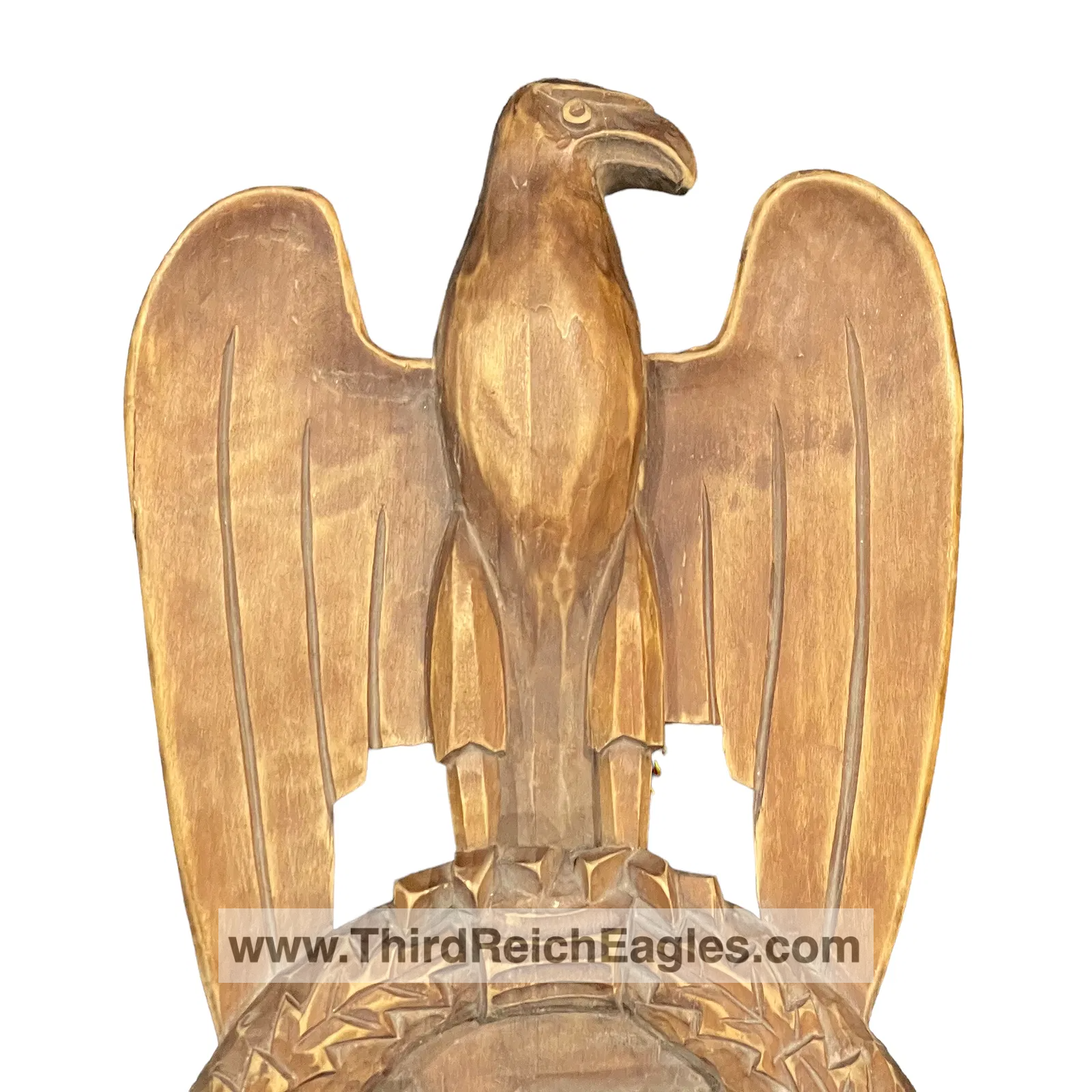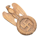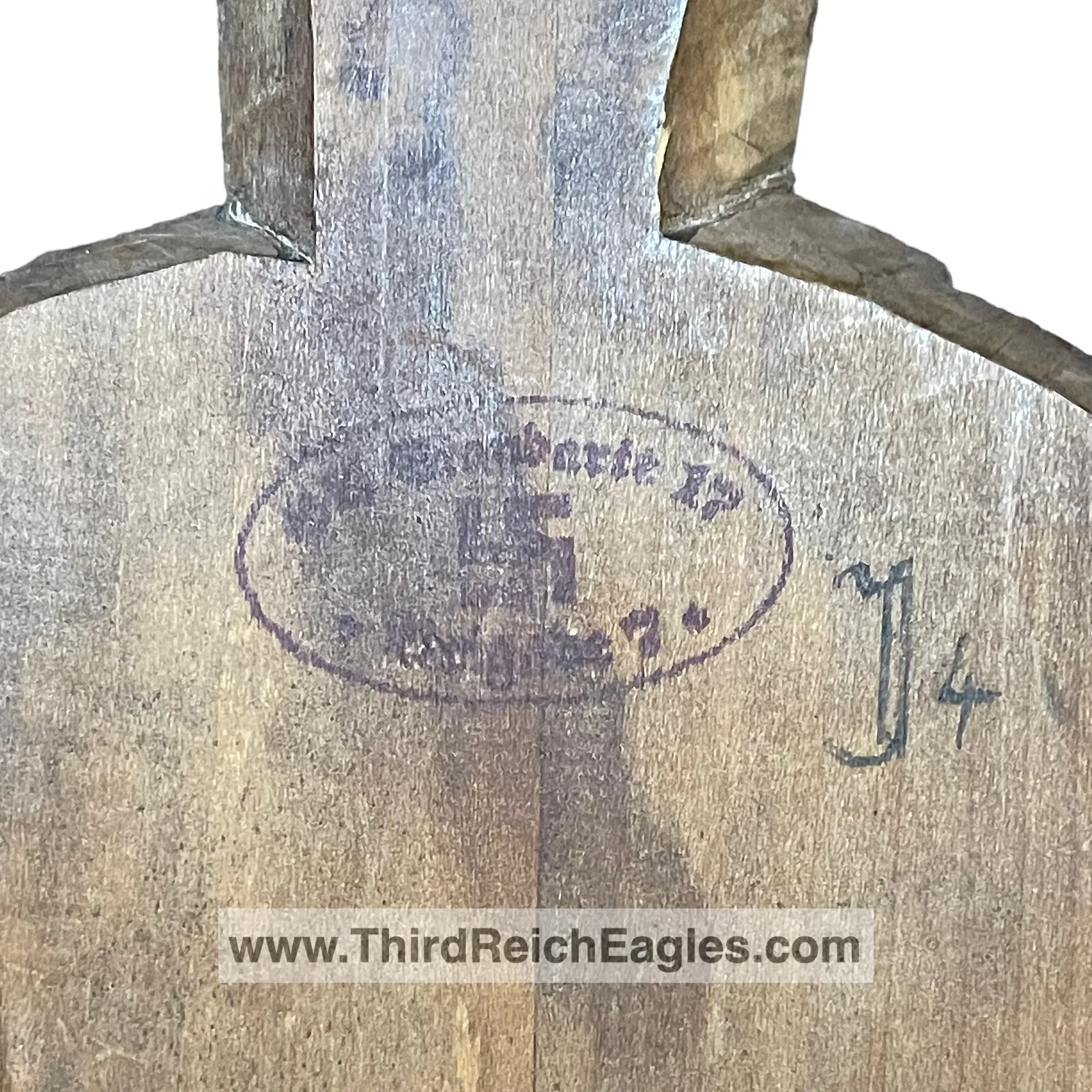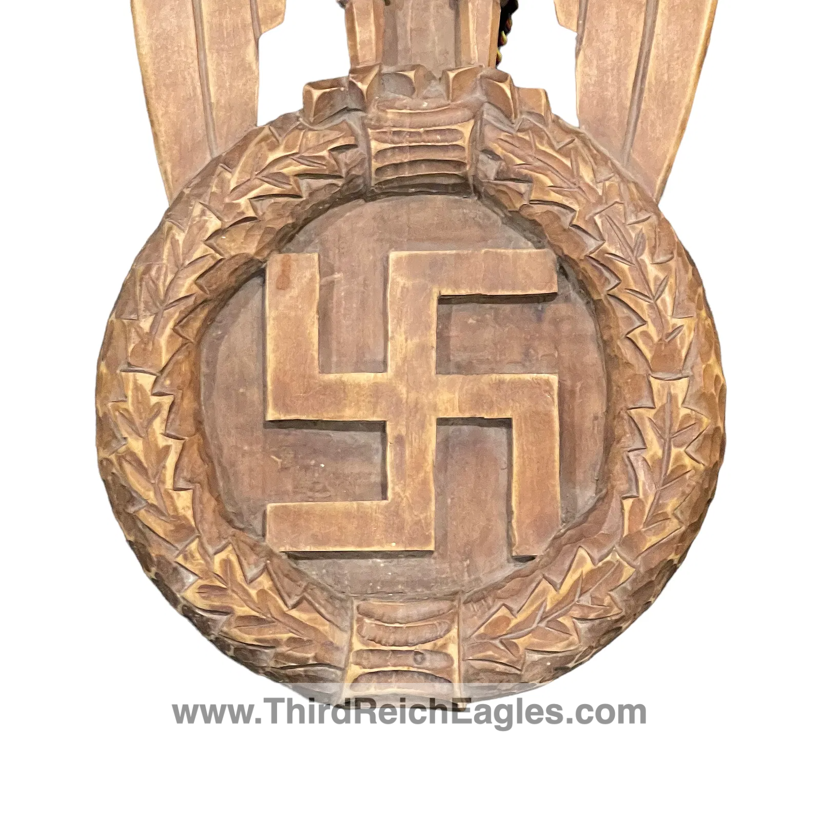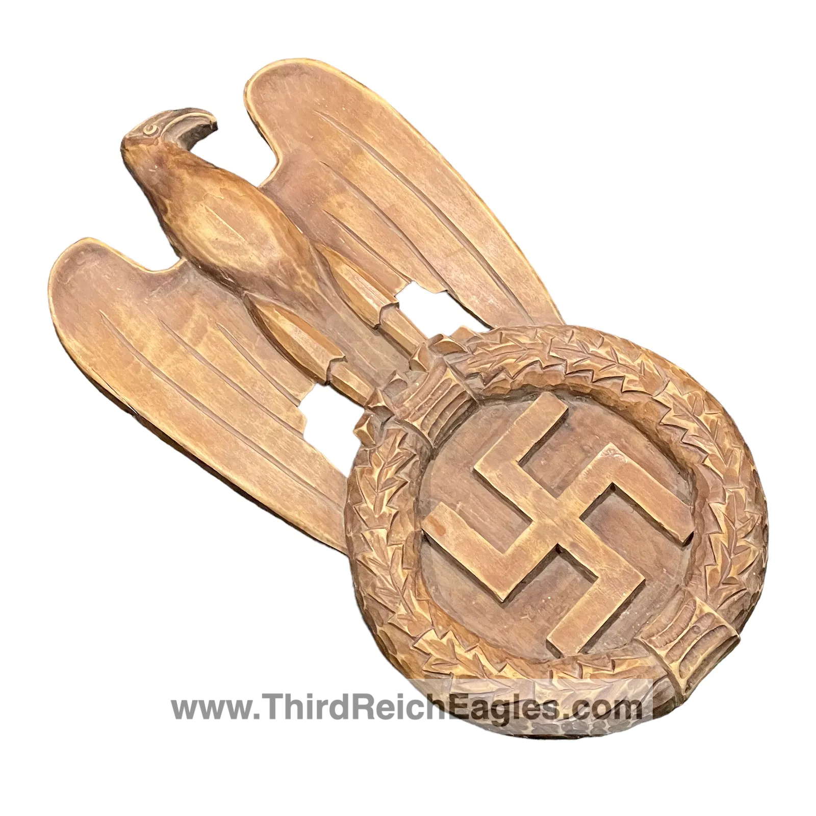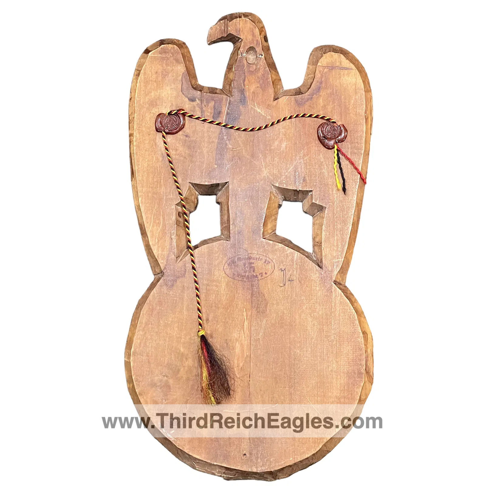 This wooden eagle is an esrly example that likely hng in the office of a high ranking SA officer. It has an ink stamp and a wax seal on the back marked with the SA symbol.