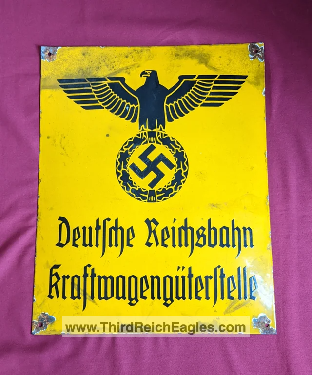 There are many original period different NDSAP, Reichspost, Reichsbahn plaques with colorful and striking stylized eagle depictions to be found – and it should also be noted that many reproductions have been more recently produced so care should be taken to carefully authenticate any of these pieces prior to purchase.