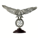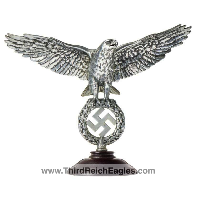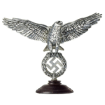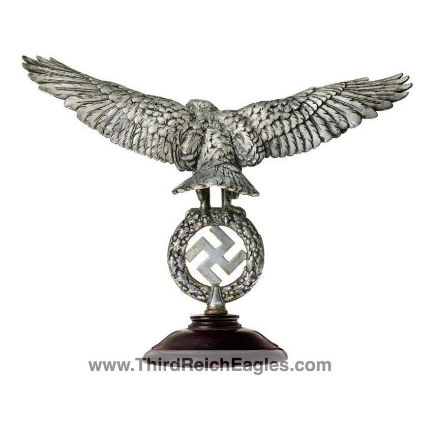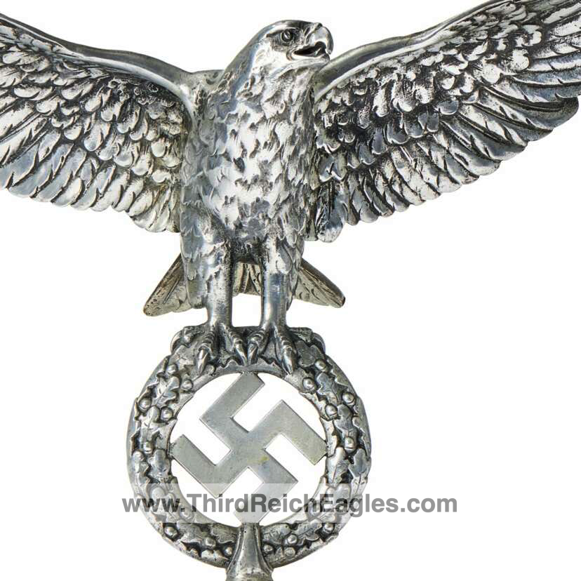 Wehrmacht eagle with outspread wings, its talons holding an oak leaf wreath with swastika. Threaded underside at bottom for connection with the instrument.